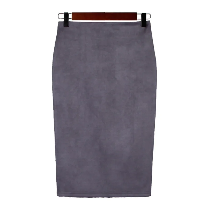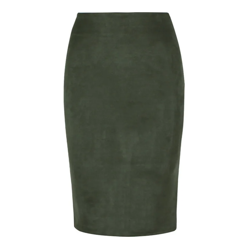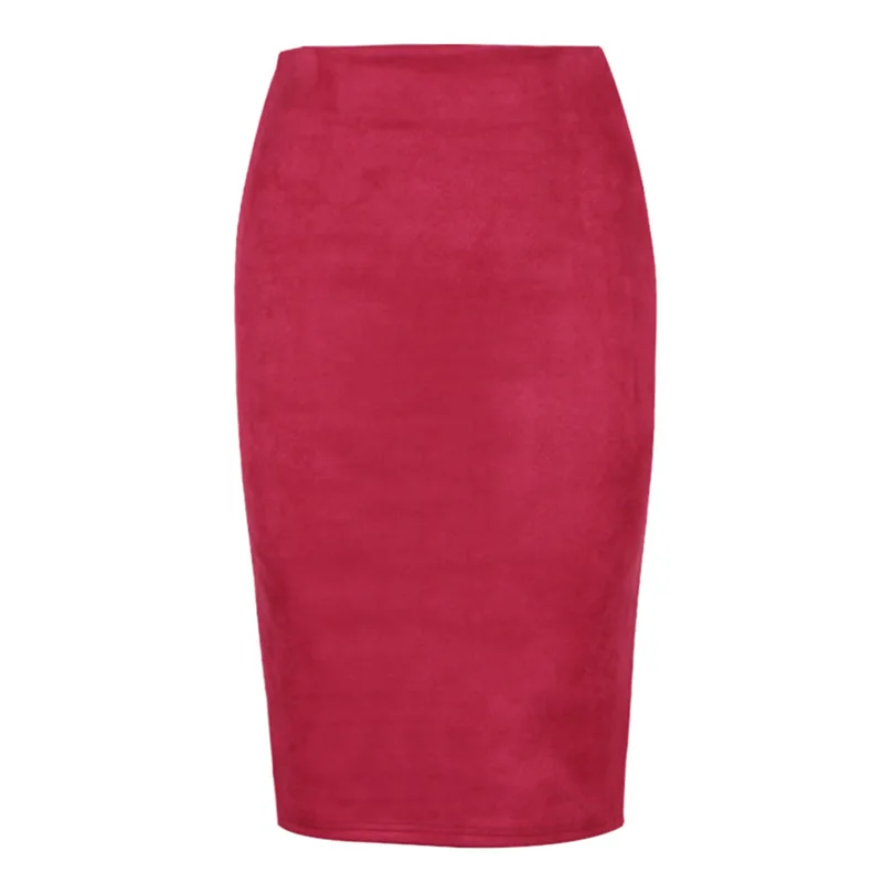 Летние Новые Модные женские замшевые юбки с высокой талией из искусственной кожи на молнии, Офисная Женская юбка-карандаш, элегантная одежда на весну