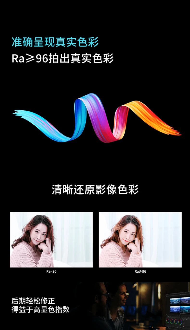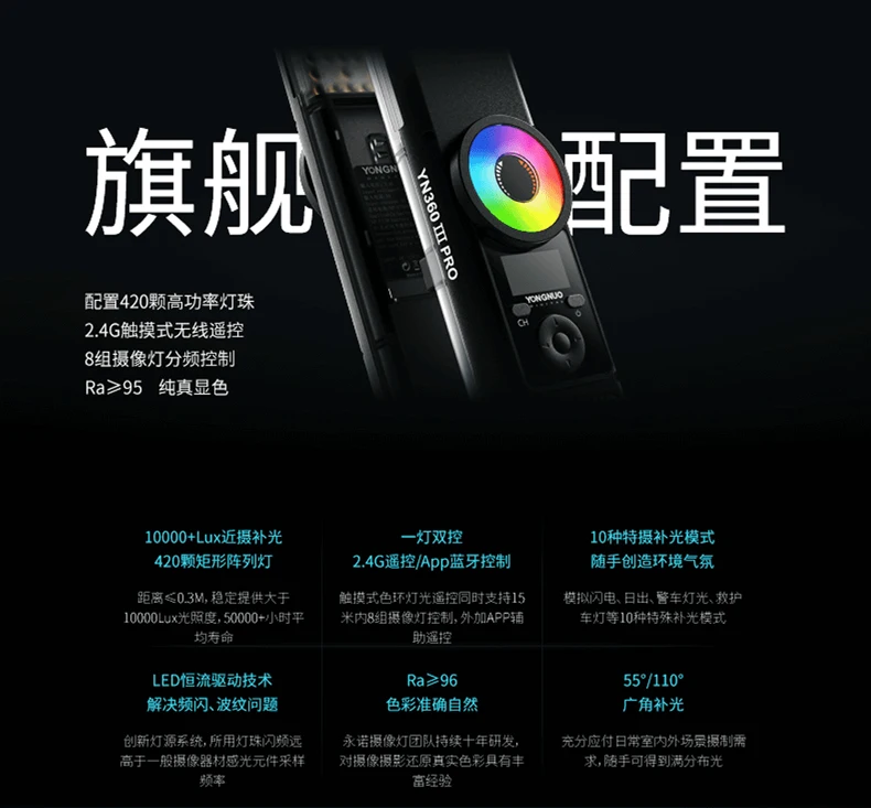 Высокий CRI: используется 360 качественных ламп с большим светящимся чипом, индекс цветопередачи больше или равен 95, YN360III PRO может идеально восстановить истинный цвет объекта.