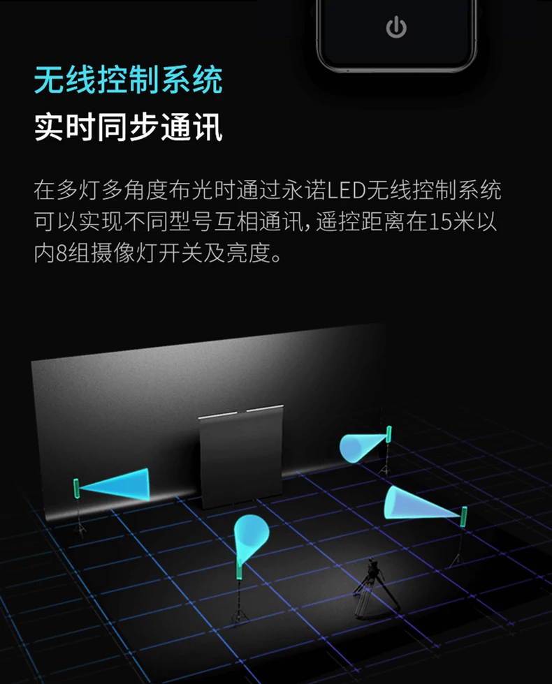 Поддержка беспроводной системы управления YONGNUO LED, YN360III PRO может реализовать функцию взаимного общения и синхронного управления с другими светодиодными лампами YONGNUO.