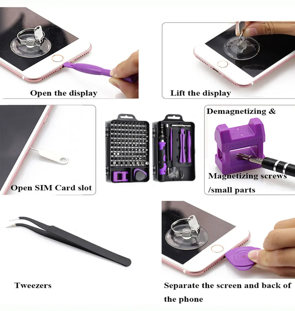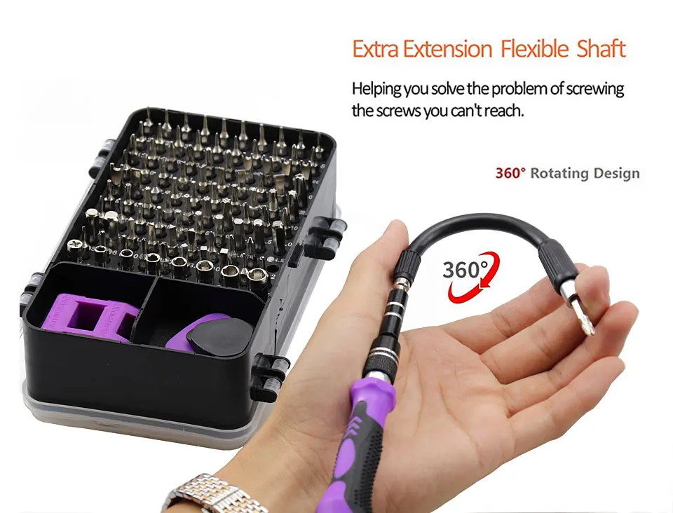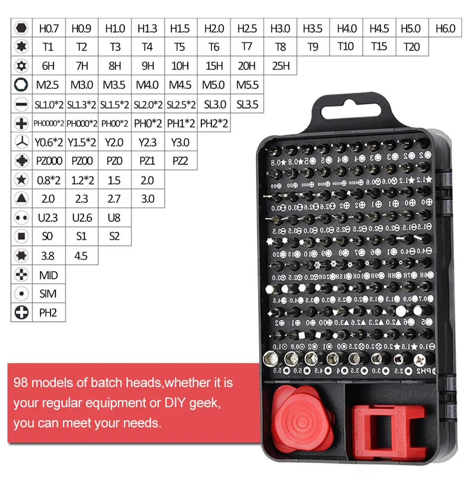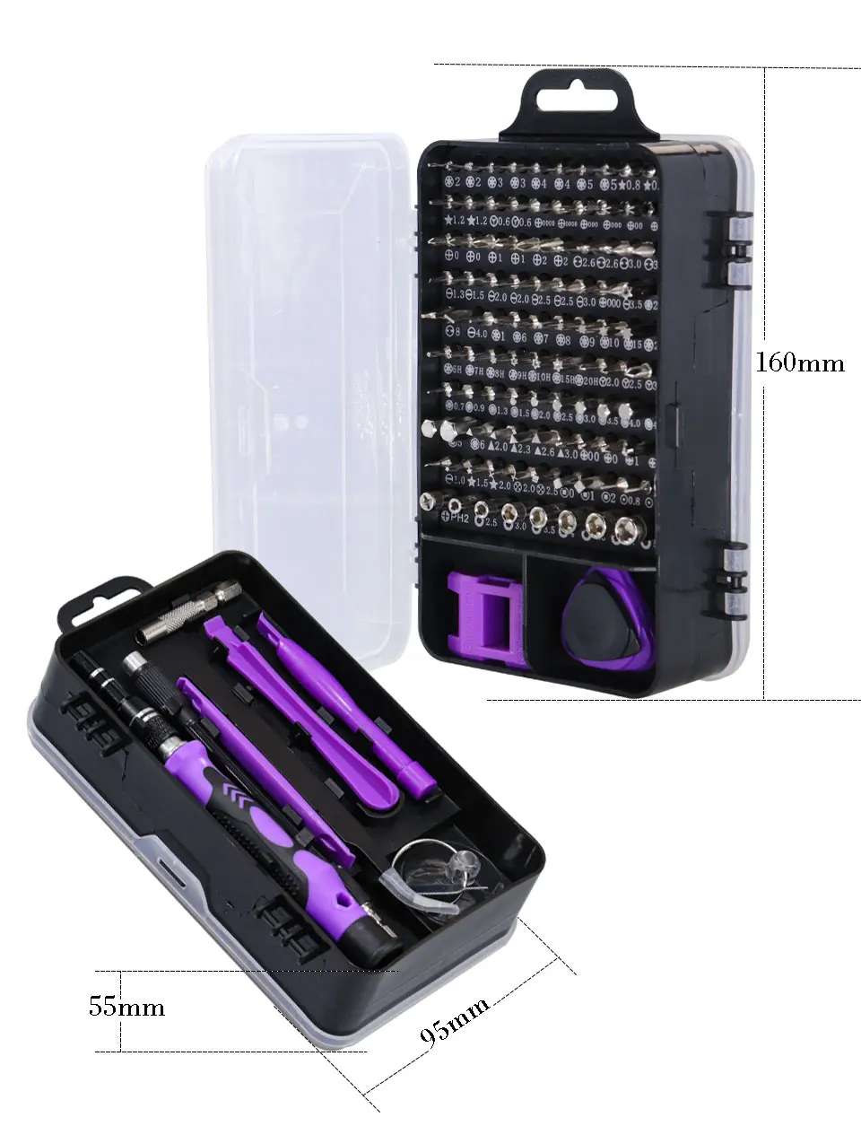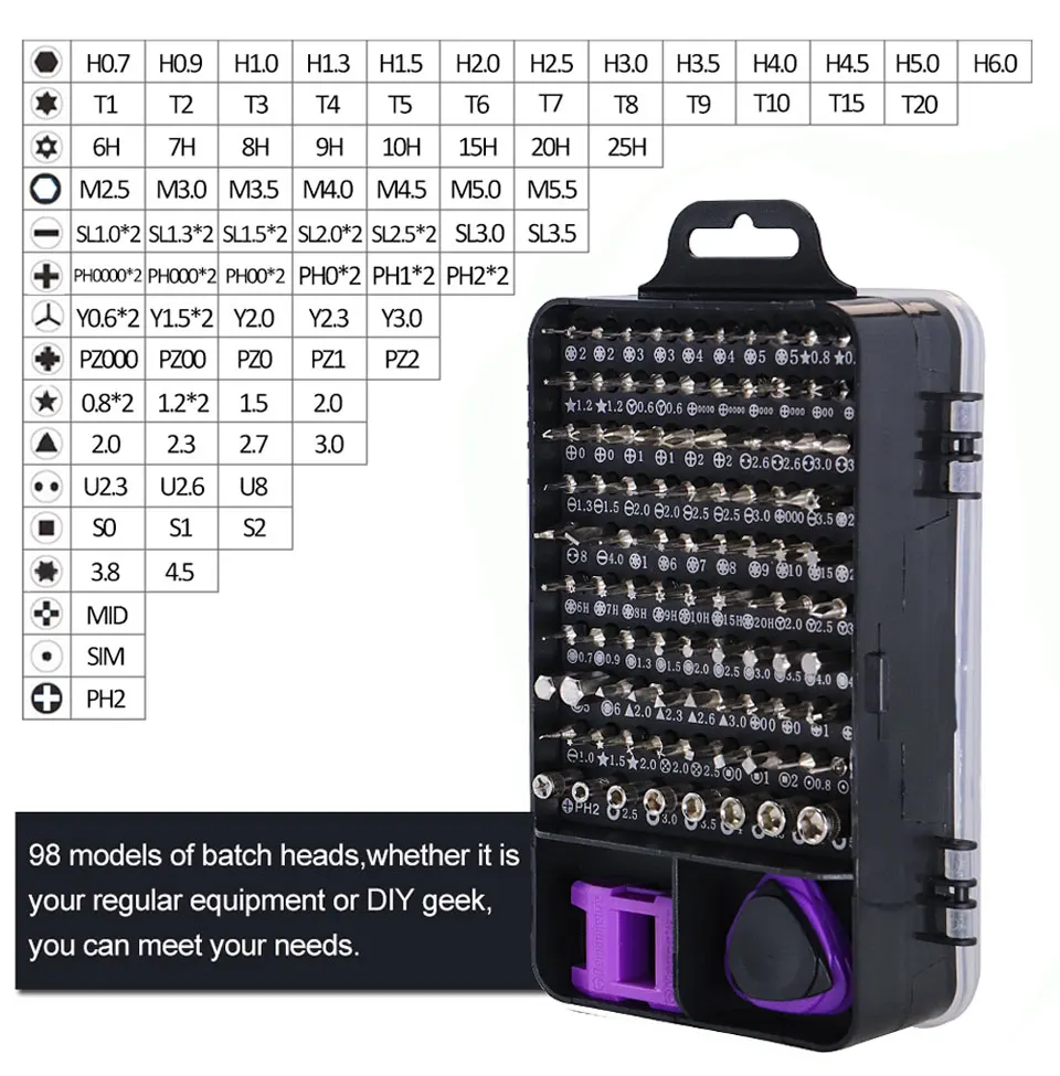 Описание набора инструментов 115 в 1: 98 отверток + 17 аксессуаров для разборки