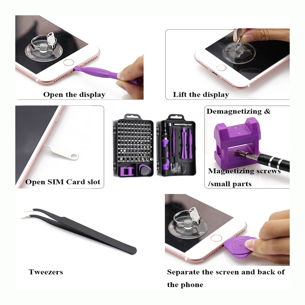 Набор прецизионных отверток 115110 в 1, насадка для отвертки, магнитные звездообразные биты, отвертки, ручка для ремонта телефона