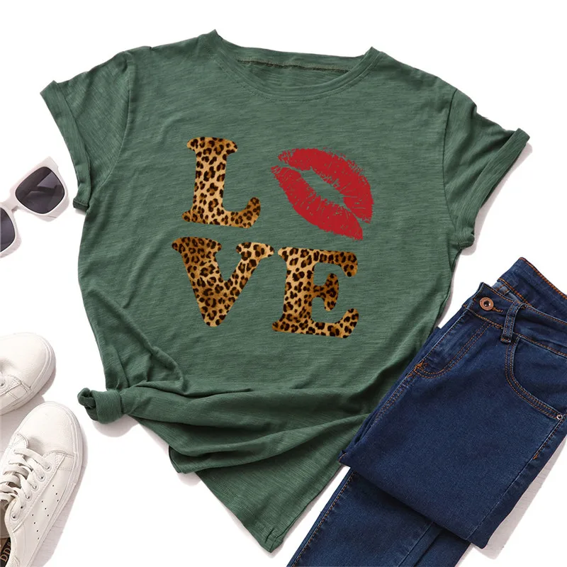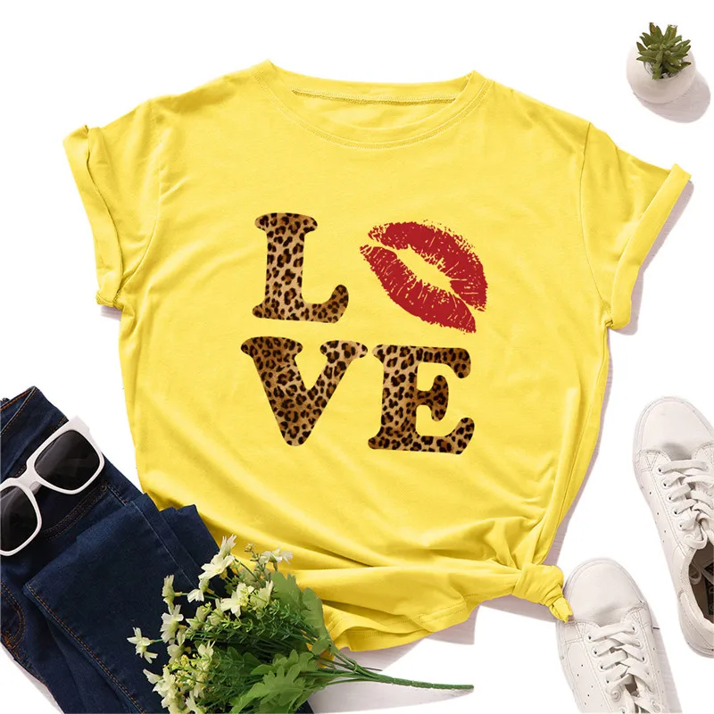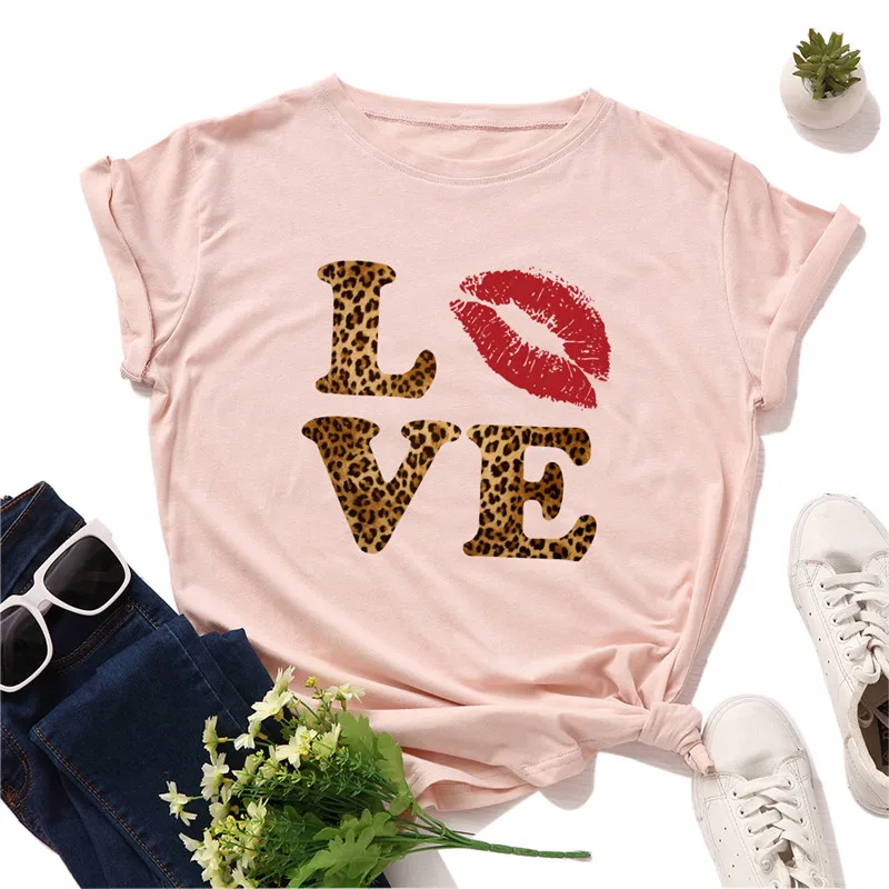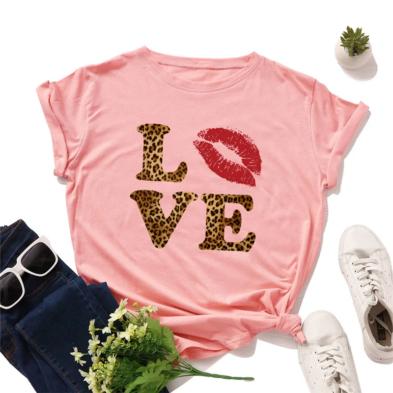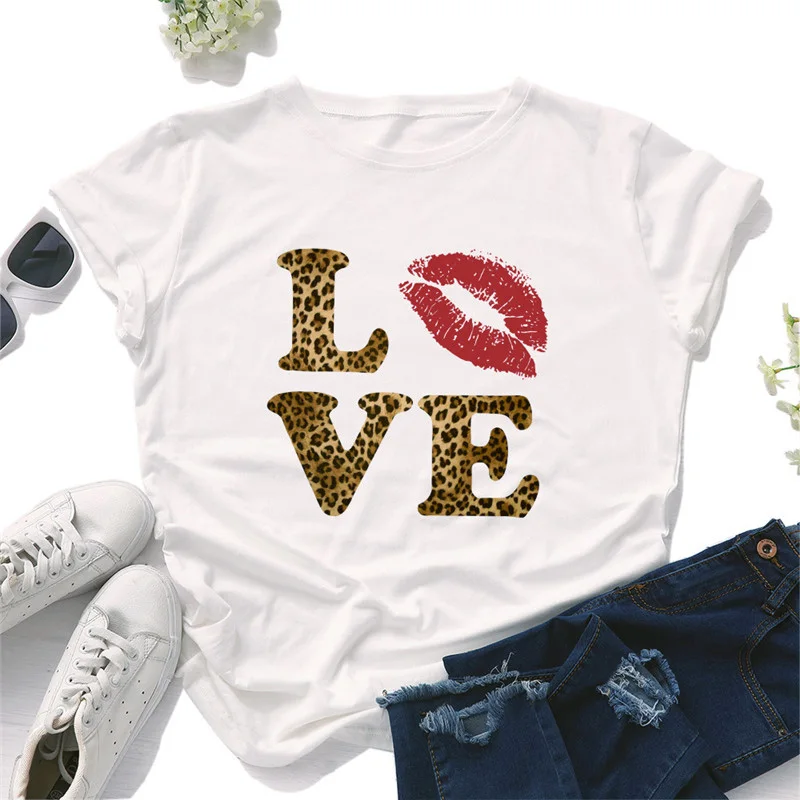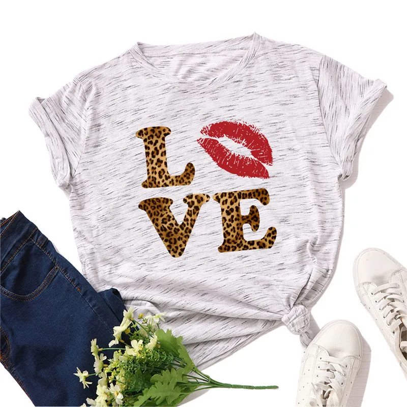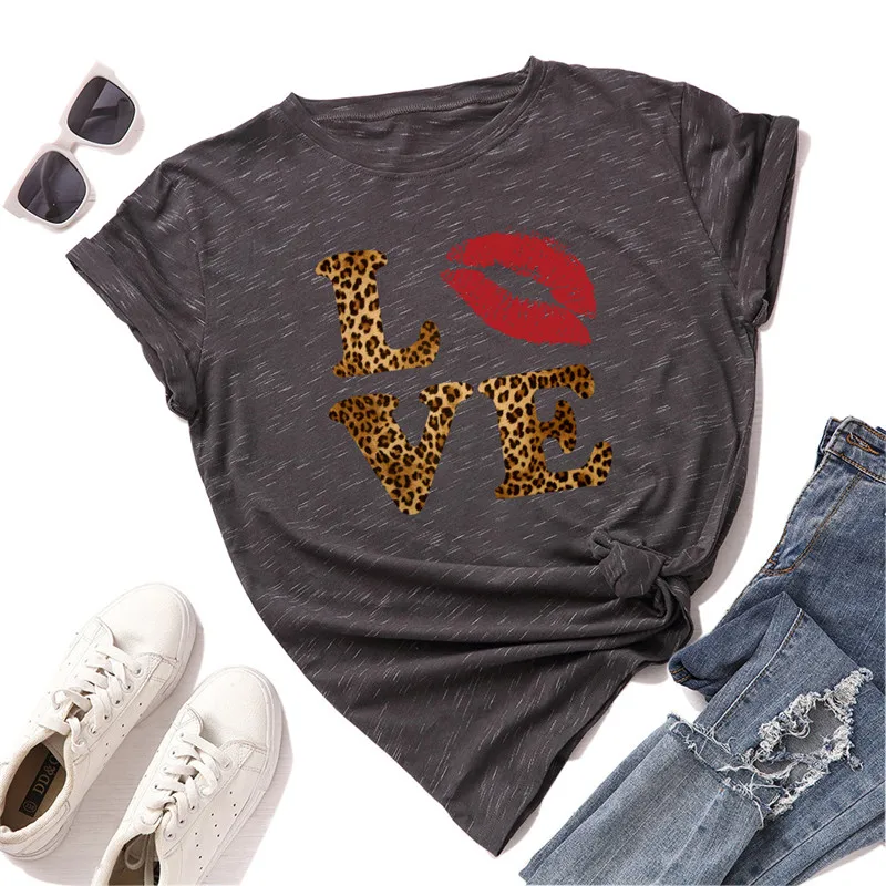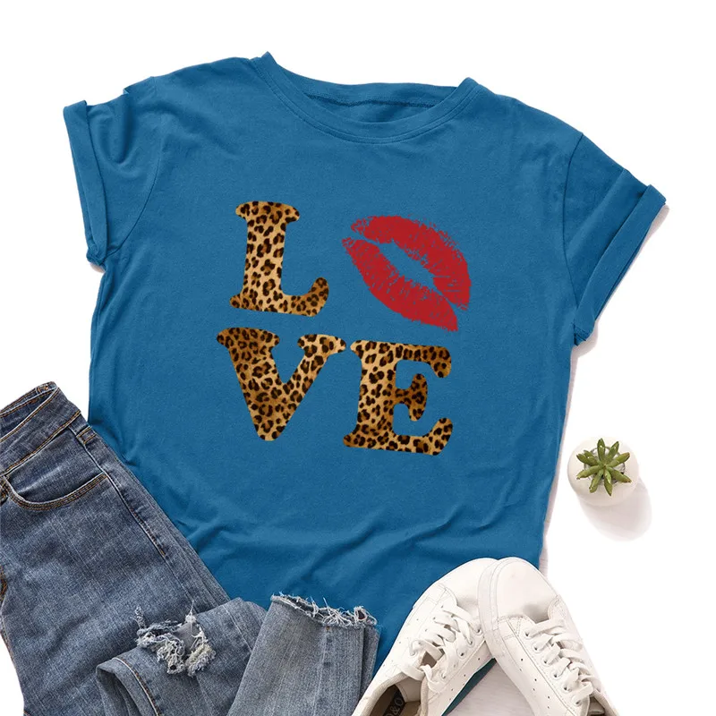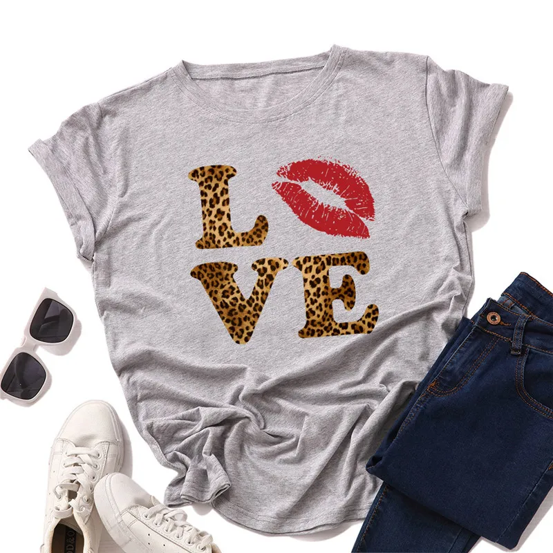 Женские рубашки, новинка, футболка из 100% хлопка с надписью LOVE, ...