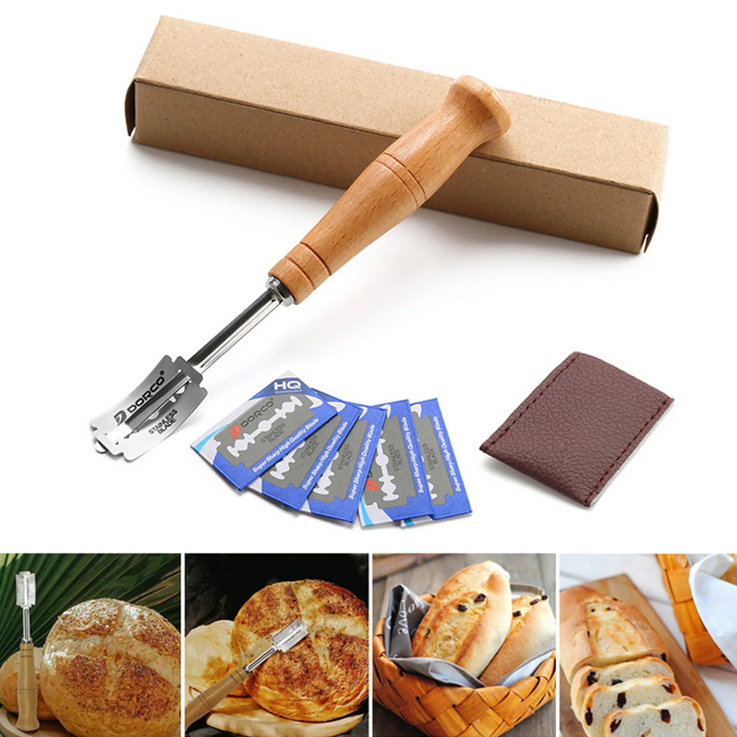 Лезвие для хлеба, теста, хлеба, лезвие, бритва, инструмент с 5 сменными лезвиями, защитный чехол для профессиональной кухни