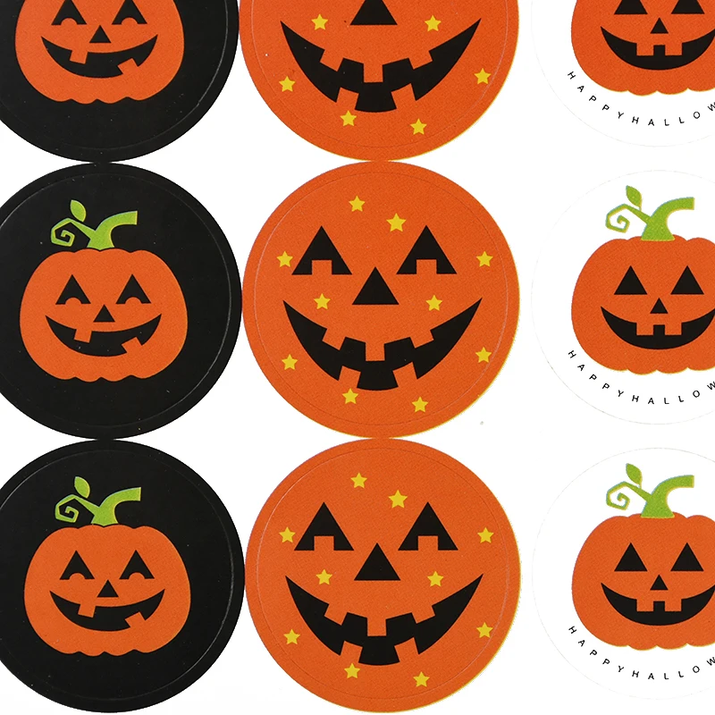 120 шт., круглые наклейки на Хэллоуин, ручная работа, сделай сам, подарок на Хэллоуин, вечерние сувениры, конфетная сумка, коробка, этикетки для печати, милая тыква, Подарочная наклейка