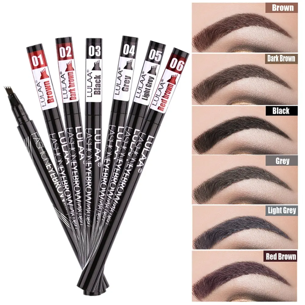 Водостойкий карандаш для бровей LULAA, 4 головки, тинт для бровей, долговечный натуральный коричневый, черный, серый карандаш для бровей, макияж