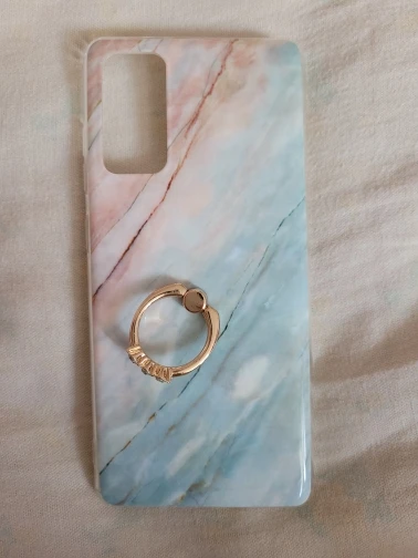 Заказ пришёл вовремя. Чехол не книжкой, обычный силиконовый, мраморная расцветка только на задней части телефона. самое прикольное это кольцо, металлическое, под золото со стразами, туговато только сгибается.
