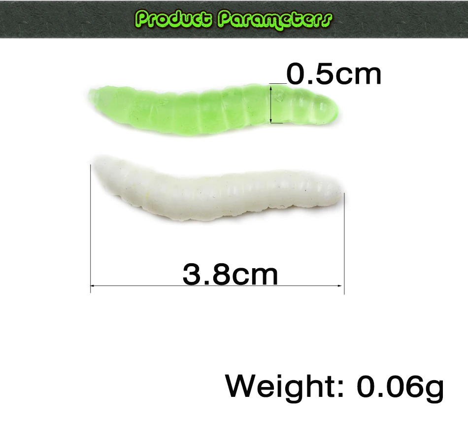 MNFT 50 шт. белый и зеленый реалистичный бионический хлеб грубки рыболовная приманка 3,8 см приманка для форели Мягкие личинки приманка