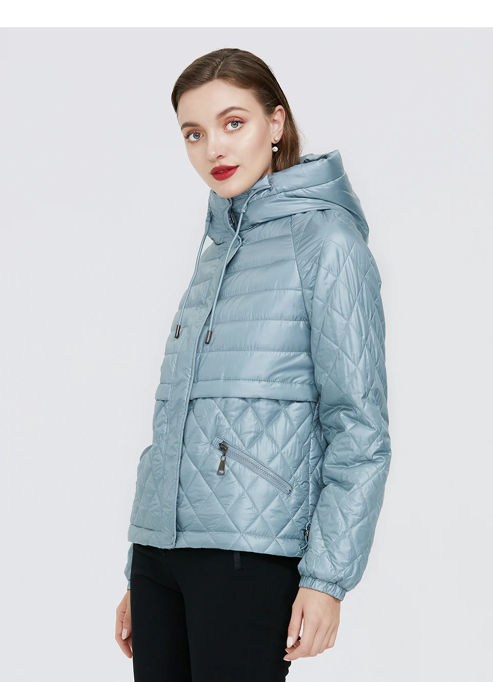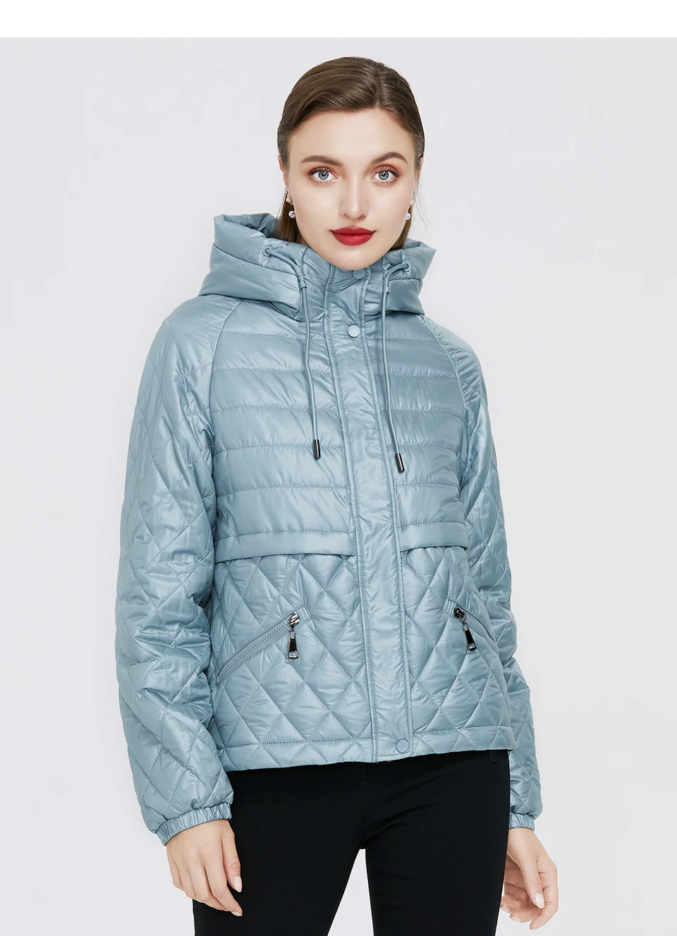 Куртка-пуховик Женская демисезонная хлопковая на молнии, с капюшоном