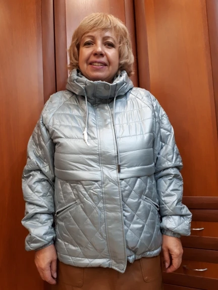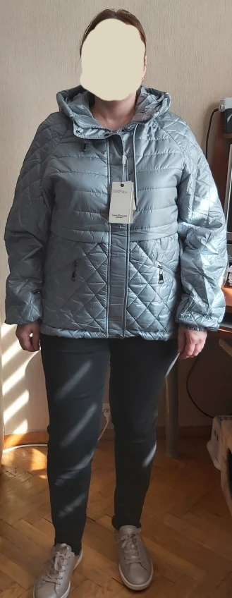 куртка классная,лёгкая,цвет серебристо-голубой. подошла на размер52,54.