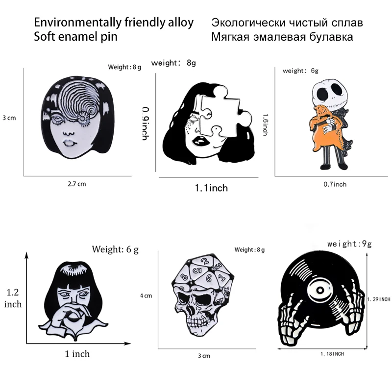 Набор черных коротких эмалированных булавок в виде черепа на Хэллоуин, брошь в стиле панк и готика для девушек и женщин, заколки на лацкан для сумок, курток, панк, модные украшения в подарок