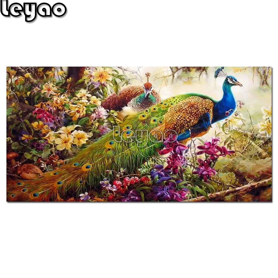 Полностью квадратная круглая дрель 5D DIY большой размер Алмазная картина цветы "павлины пара" 3D набор вышивка крестом, мозаичный Декор подарок