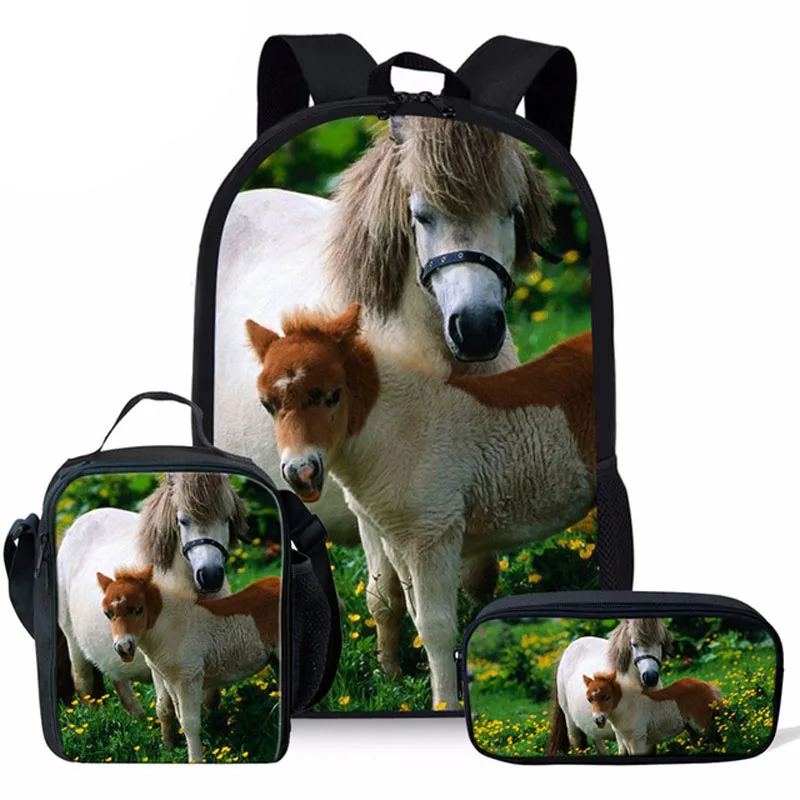Набор школьных сумок для девочек, рюкзак с рисунком милой лошади, Детская сумка для учебников