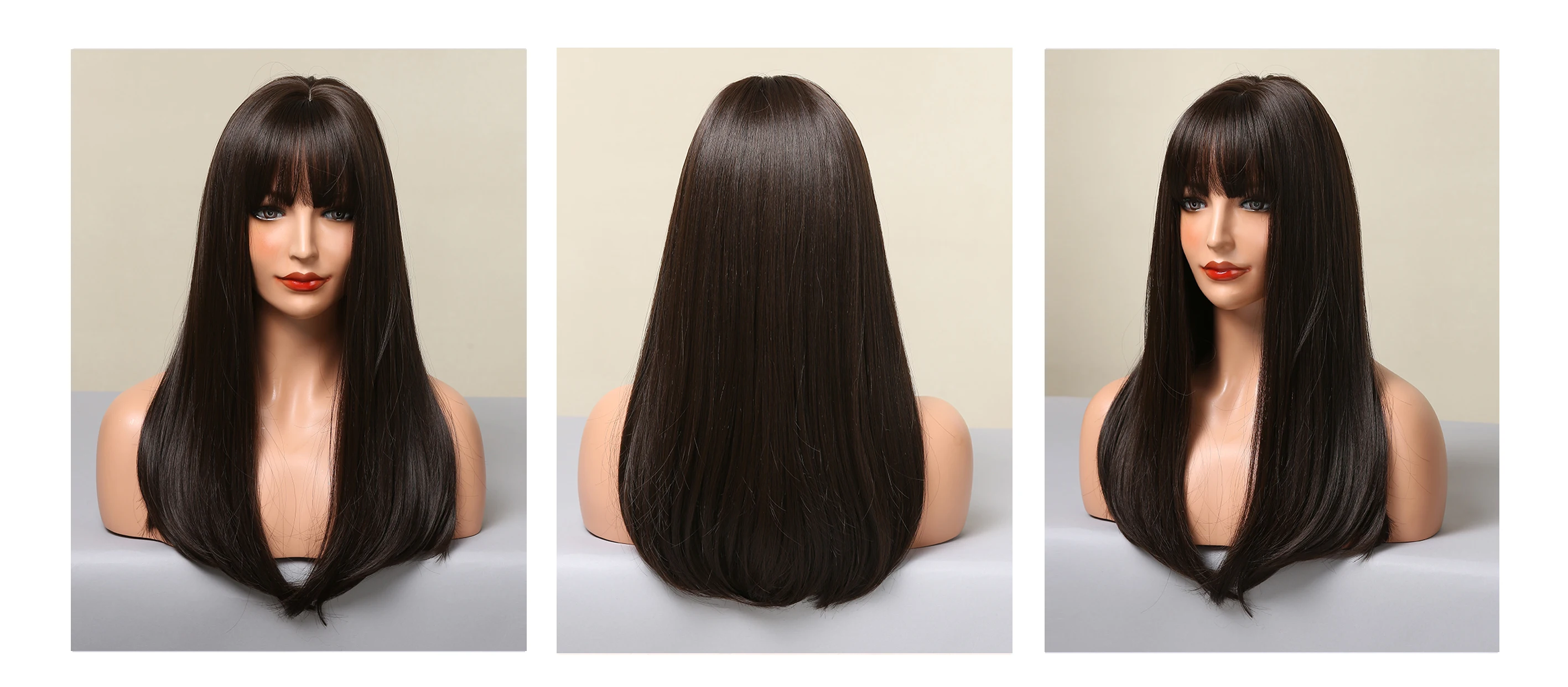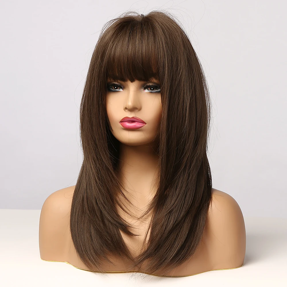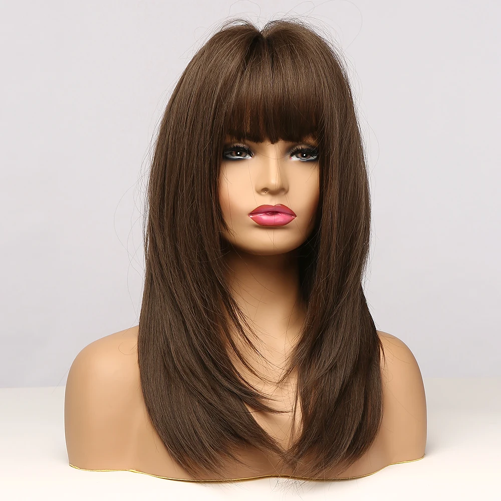 Парик LOUIS FERRE средней длины, прямые коричневые парики длиной плеч, многослойный синтетический парик с челкой для белых женщин, парики ежедневного использованияЛолиты