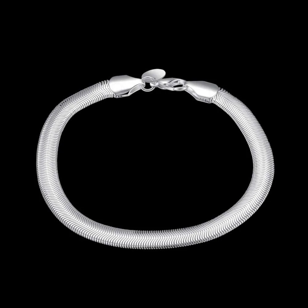 Высокое качество 6 мм плоская мягкая змейка цепочка модный серебрис...