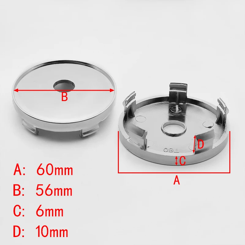 Особенности:4 колпачка для колеса автомобиля (включая крышку и наклейку)Наклейка 4 шт. (без крышки)-100% водонепроницаемость. 100% новинка.-Отлично подходит для колпачков колеса автомобиля-Материал: АБС-пластик, металл-Размер: стикер 56 мм, колпачки 60 мм-Цвет: черный, серебристый-Количество: 4 шт.Пожалуйста, измерьте Центр колеса перед покупкой этих колпачков.