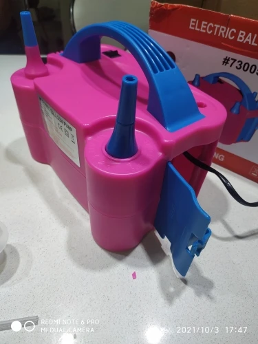 Пришел быстро и точно так же, как описано. Отлично работает и быстро надувает воздушные шары.