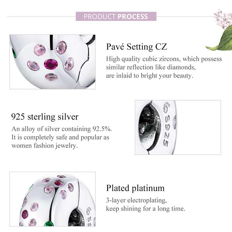 Браслет-прокладка из серебра 925 пробы, с розовыми цветами