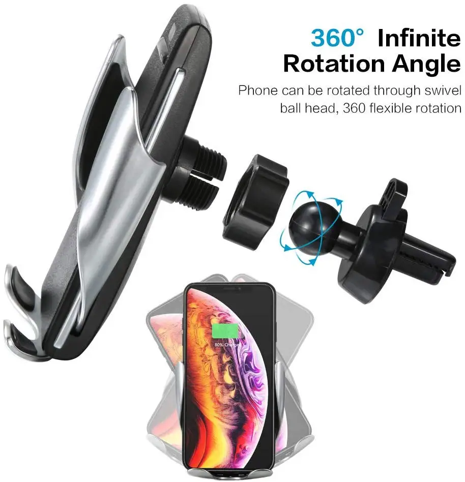 Беспроводное Автомобильное зарядное устройство Qi, 10 Вт, быстрая зарядка, умный датчик, держатель для телефона, сотовый телефон, автоматическое зажимное автомобильное крепление, беспроводное зарядное устройство s5