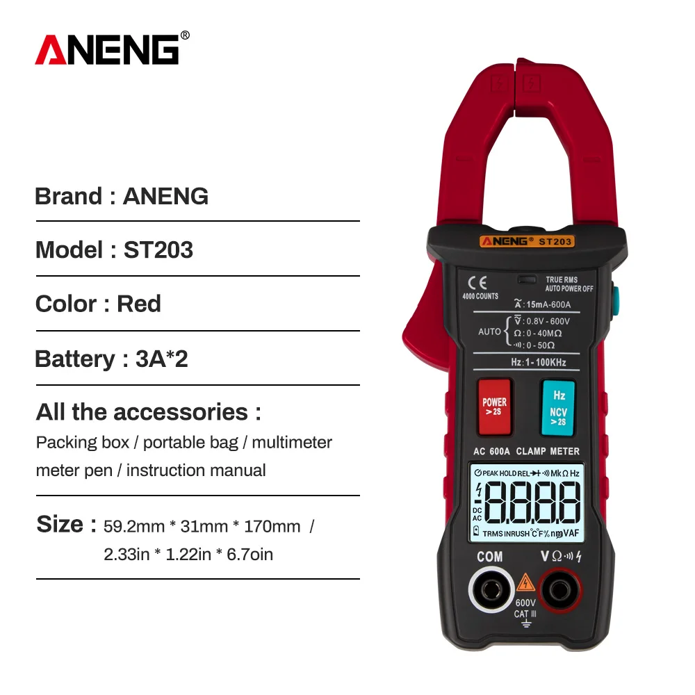 ST203 клещи 4000 отсчетов Цифровой мультиметр True-RMS AC/DC напряжение NCV сопротивление импульсный ток Авто Диапазон вспышка светильник