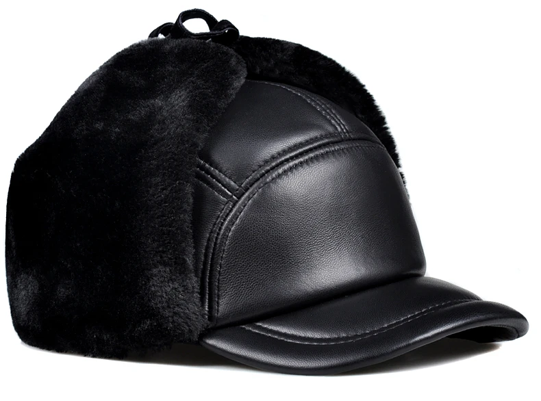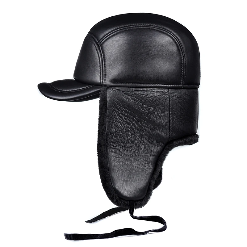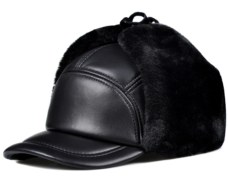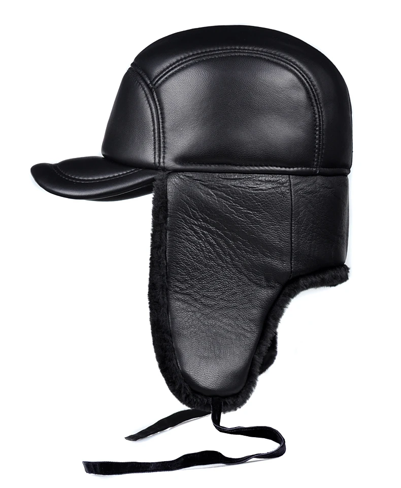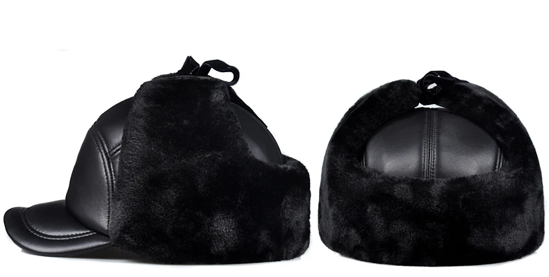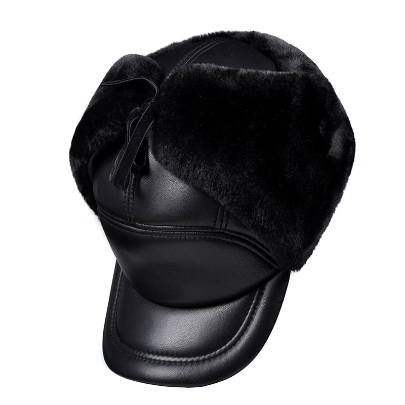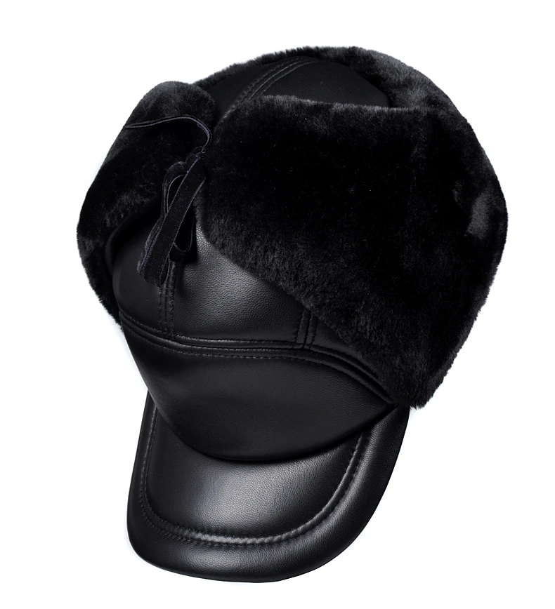Женская зимняя куртка на хлопковом подкладе для мальчиков теплая защита ушей бомбардировщик шапка мужская женская обувь из натуральной кожи с искусственным мехом внутри черный ультра большой Размеры 55-60 см шапки