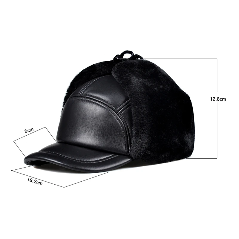 Женская и мужская зимняя теплая шапка-ушанка с защитой ушей, мужская женская черная шапка из натуральной кожи с искусственным мехом внутри, очень большие размеры 55-60 см