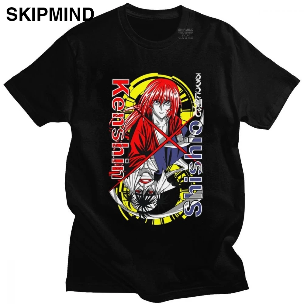 Новинка руруруни Кеншин Футболка мужская из мягкого хлопка Аниме Манга фехтовальщик Самурай х Футболки с круглым вырезом с короткими рукавами футболка для фанатов подарок