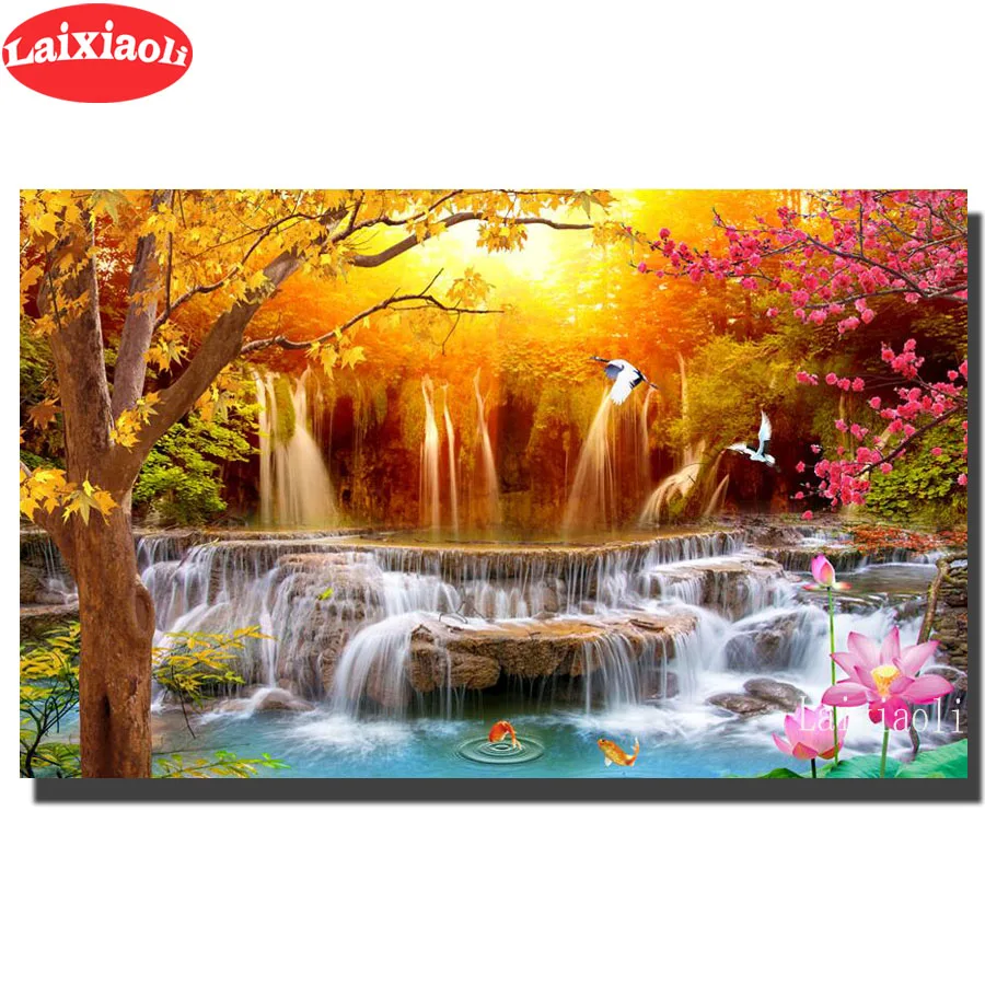 Алмазная живопись "сделай сам", закат, водопад, наборы для вышивки крестиком 5d
