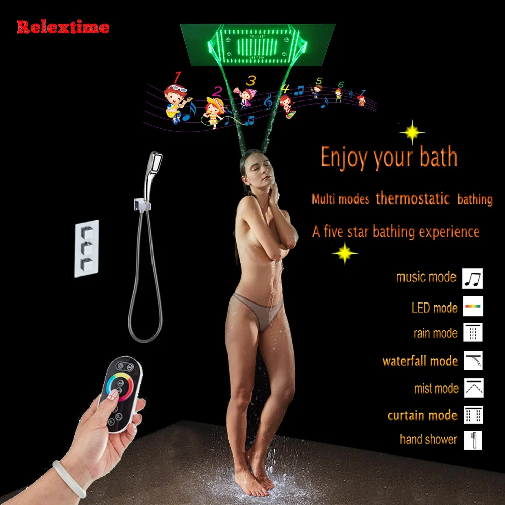 Bluetooth музыкальная насадка для освещения, детская головка, скрытый Встраиваемый душевой набор, термостатический смеситель для спа-душа, кран