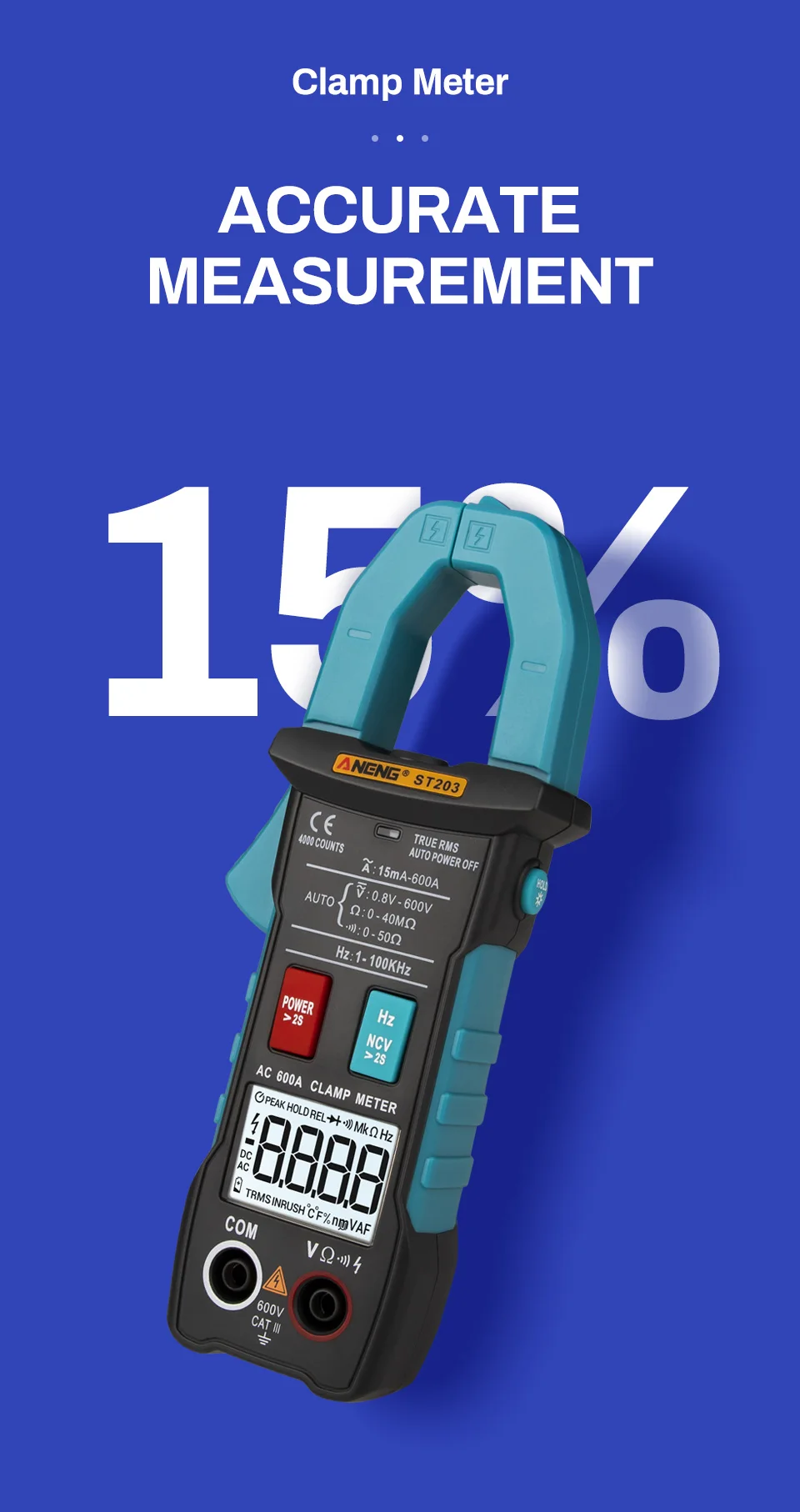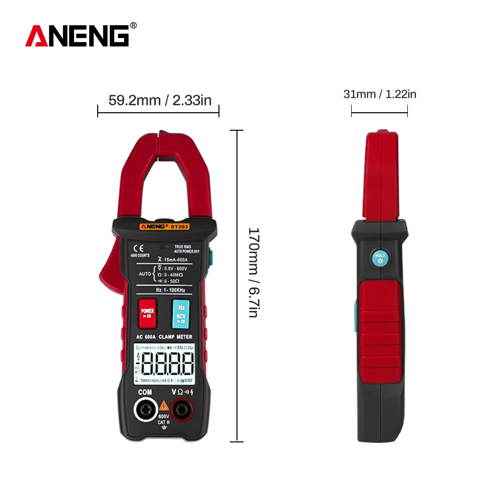 Токоизмерительные клещи ST203, Постоянныйпеременный ток, напряжение, истинное среднеквадратичное значение, Автоматический диапазон, емкость, Бесконтактный мультиметр, тестер