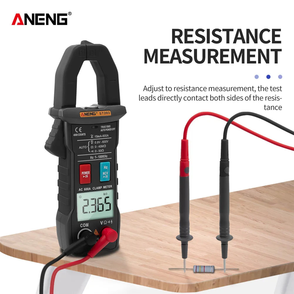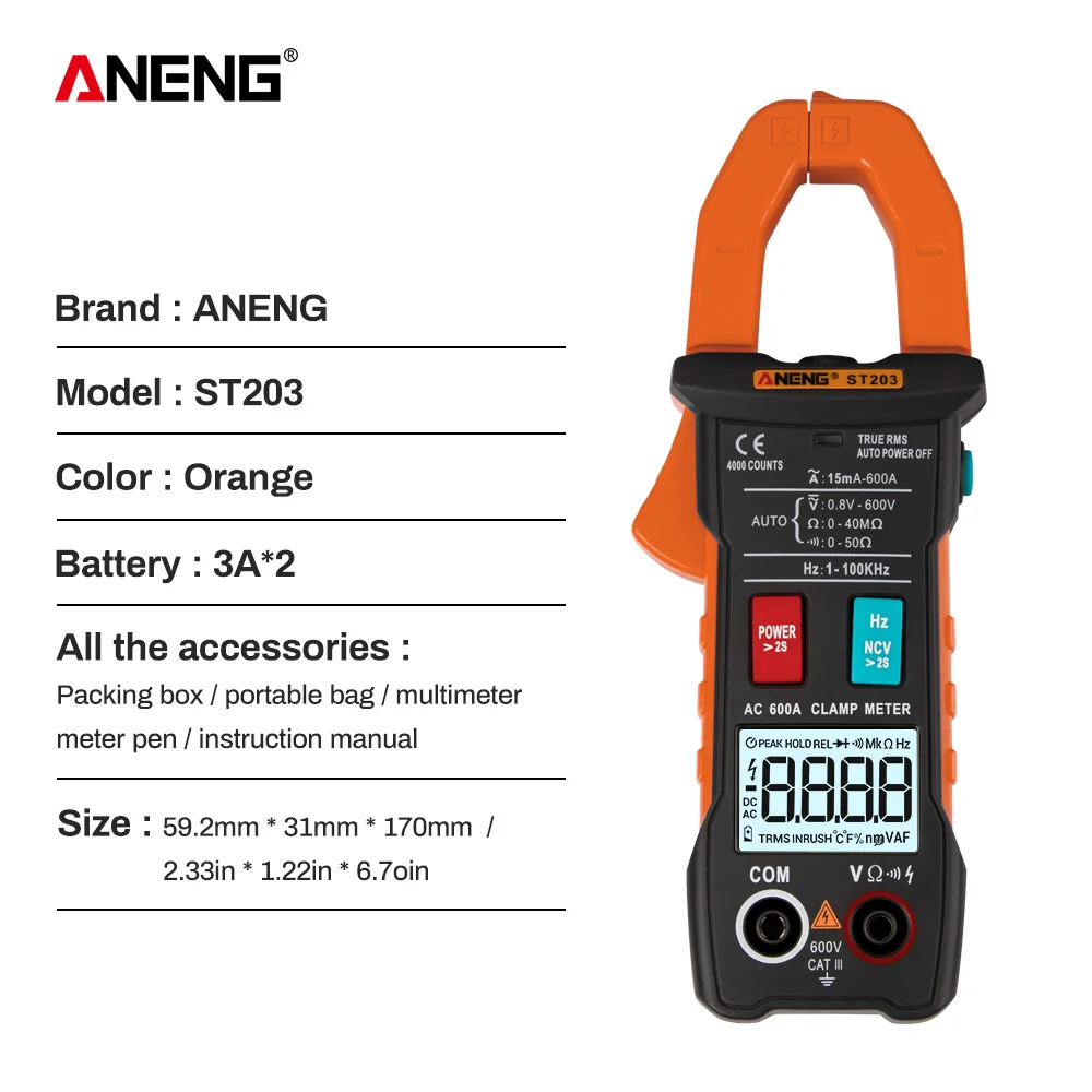 Клещи ST203, 4000 расчетов, цифровой мультиметр True-RMS, напряжение переменного/постоянного тока, сопротивление НТС, импульсный поток, Автоматический диапазон, вспышка