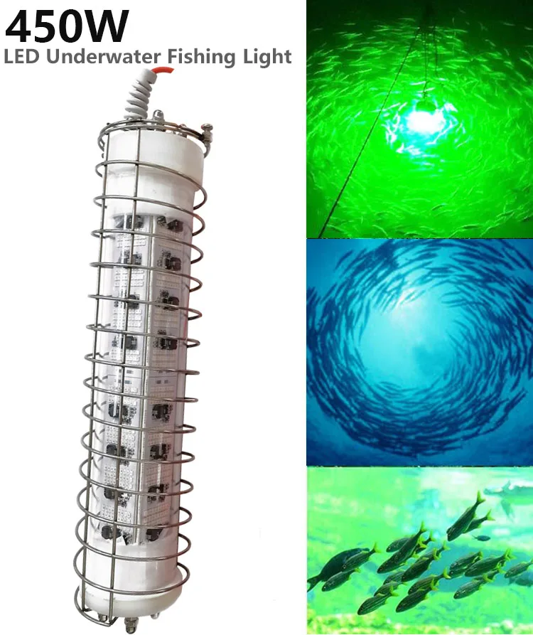 12-24V 450W светодиодный рыболовный подводные светильники Нержавеющаясталь клетка защитный рукав Светодиодный прожектор лампы рыболовные приманки лампы