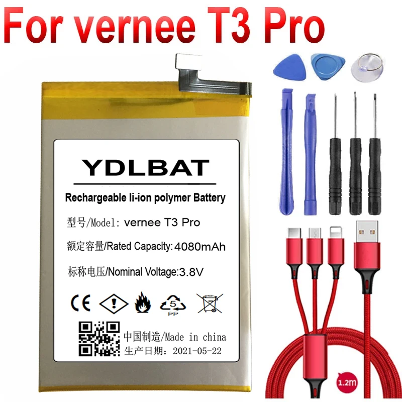Аккумулятор для vernee T3 Pro, 4080 мАч, длительное время ожидания, подарок, инструменты для демонтажа, аккумулятор для vernee 476180P