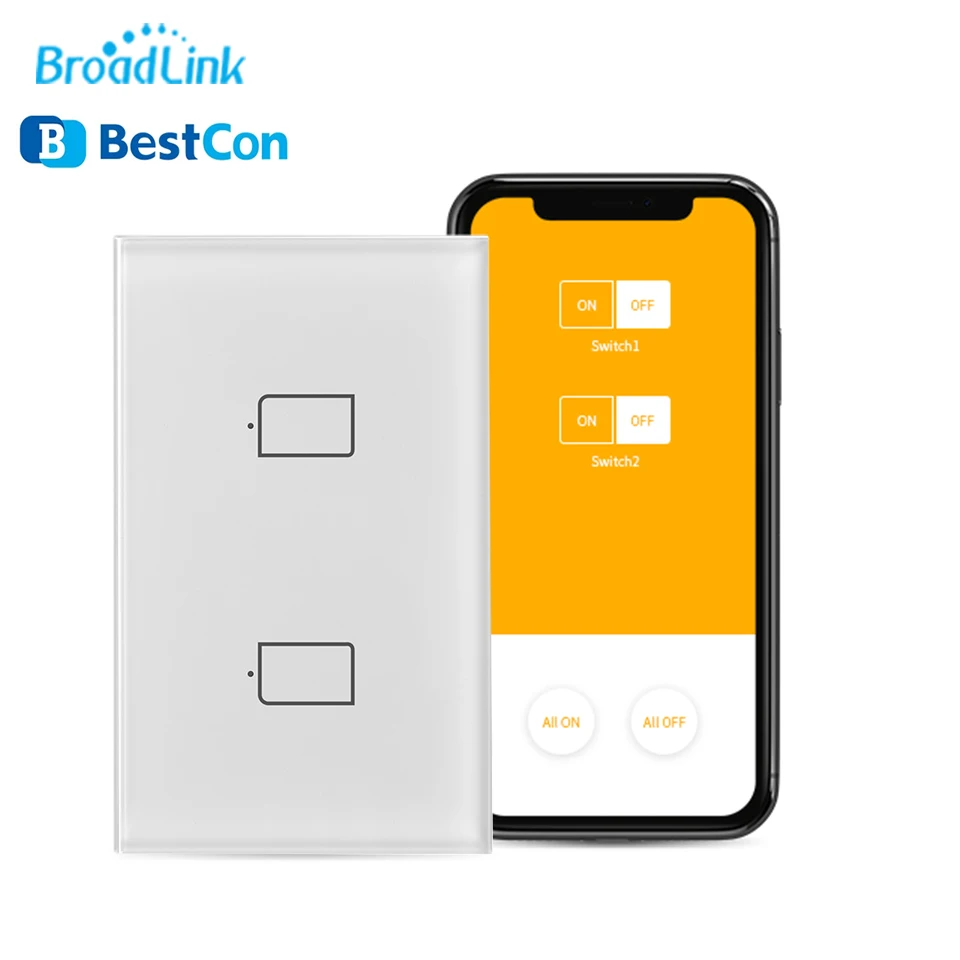 Настенный светильник Broadlink TC2S US, WiFi переключатель, 2 банды, умная домашняя стеклянная панель, сенсорное управление, беспроводные переключатели 110 в 220 в через rm4 pro