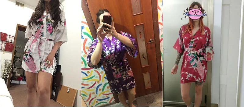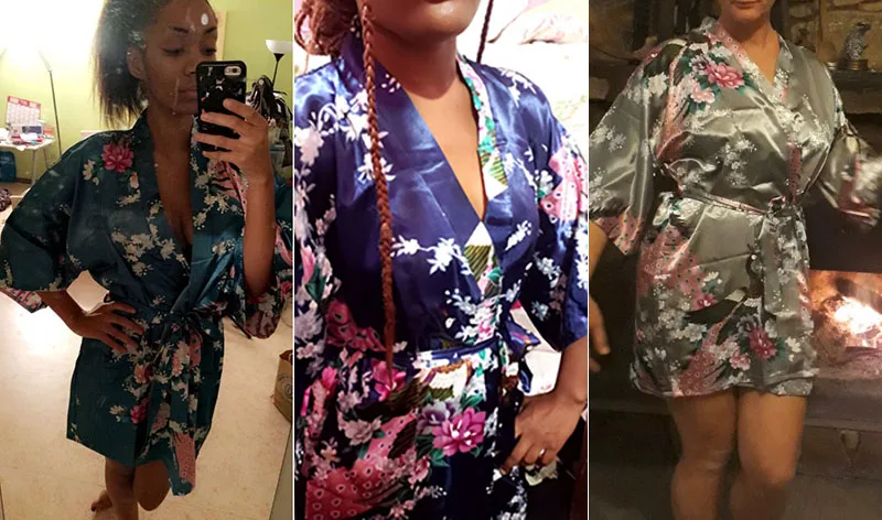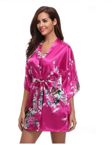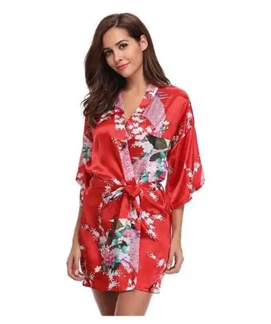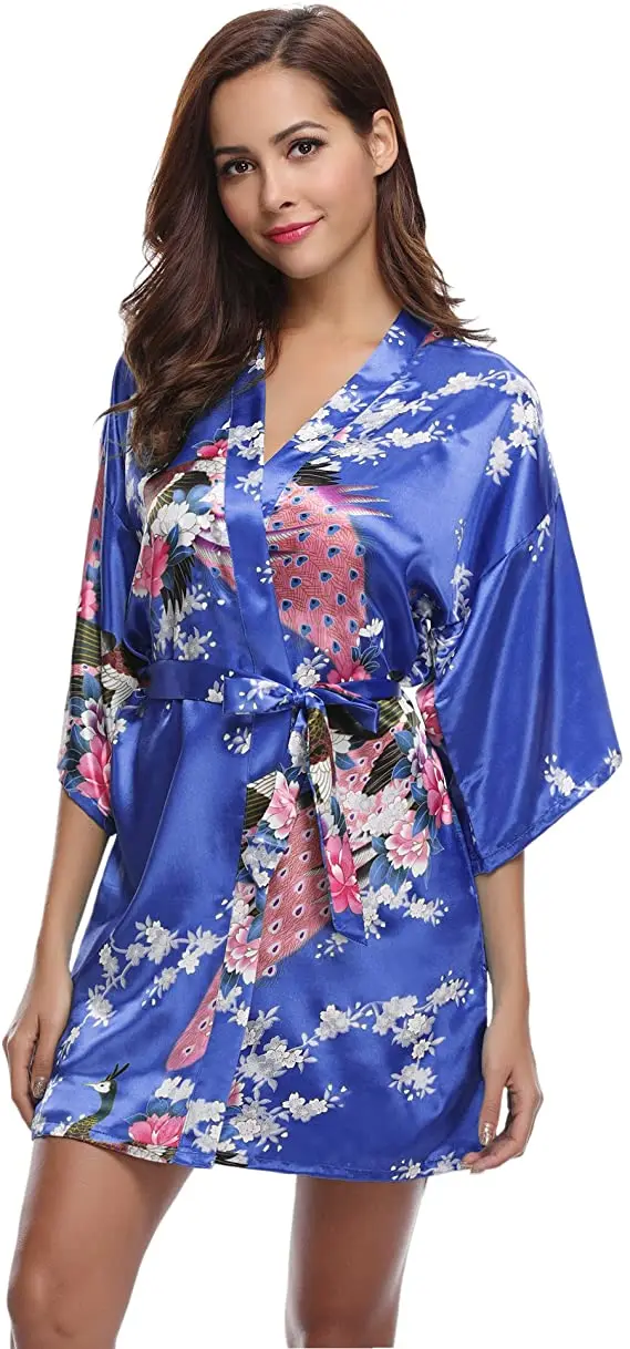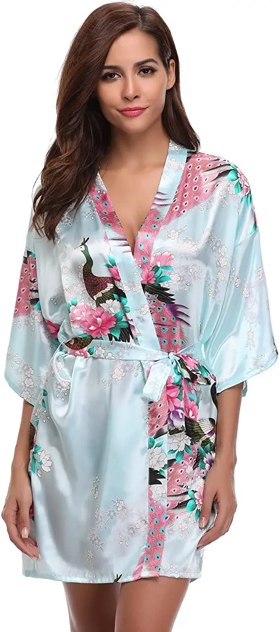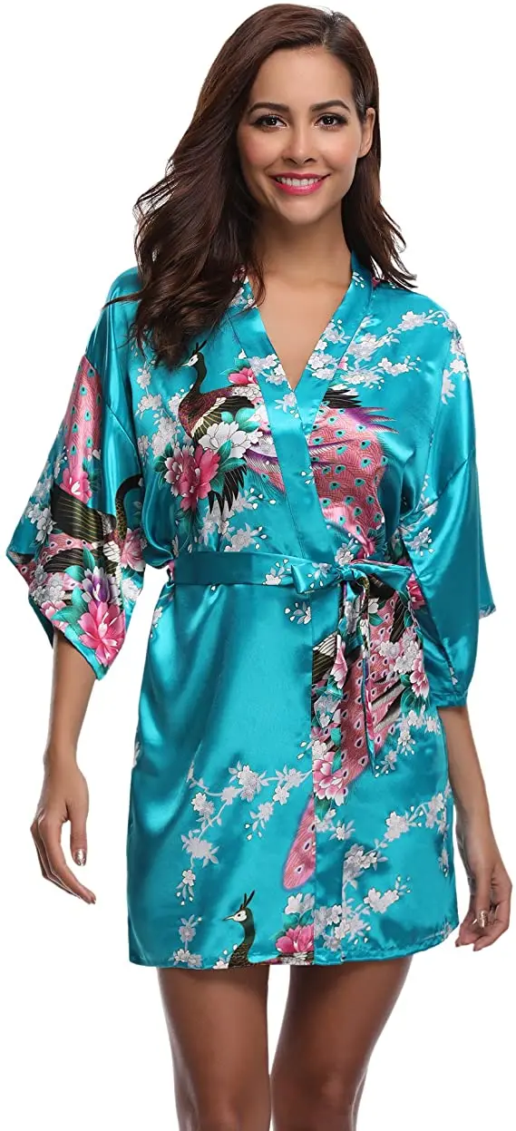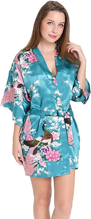 Халат Шелковый Атласный Женский, с цветочным принтом