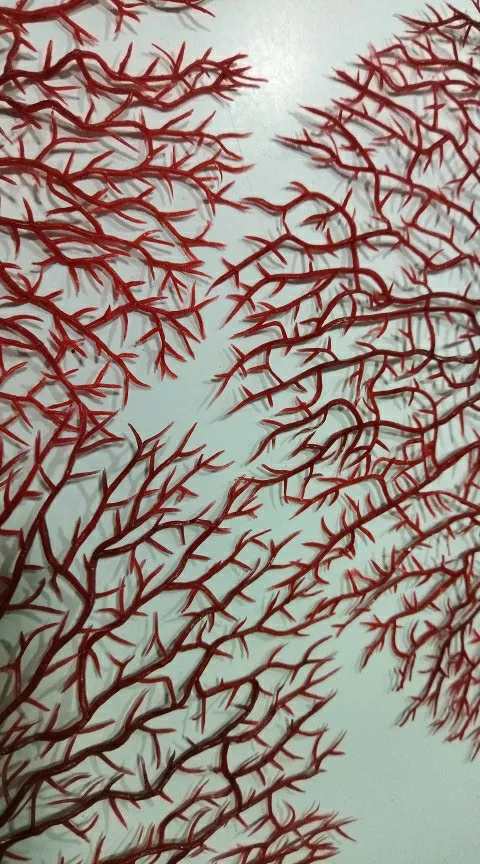 Этот отзыв про красное растение. Заказала белое и красное. Белое хорошего качества, а красное очень неаккуратное, пришлось "доводить до ума" и ножницами, и горячим ножом. Смотрите фото. Я убирала излишки не менее часа. Поэтому сняла одну звезду. В аквариуме смотрятся хорошо. Упаковано хорошо, доставка до г. Иваново чуть больше 2-х недель.