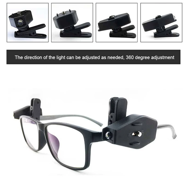 Клипса для очков 2 шт., мини фонарик для очков, лампа для чтения, Р...