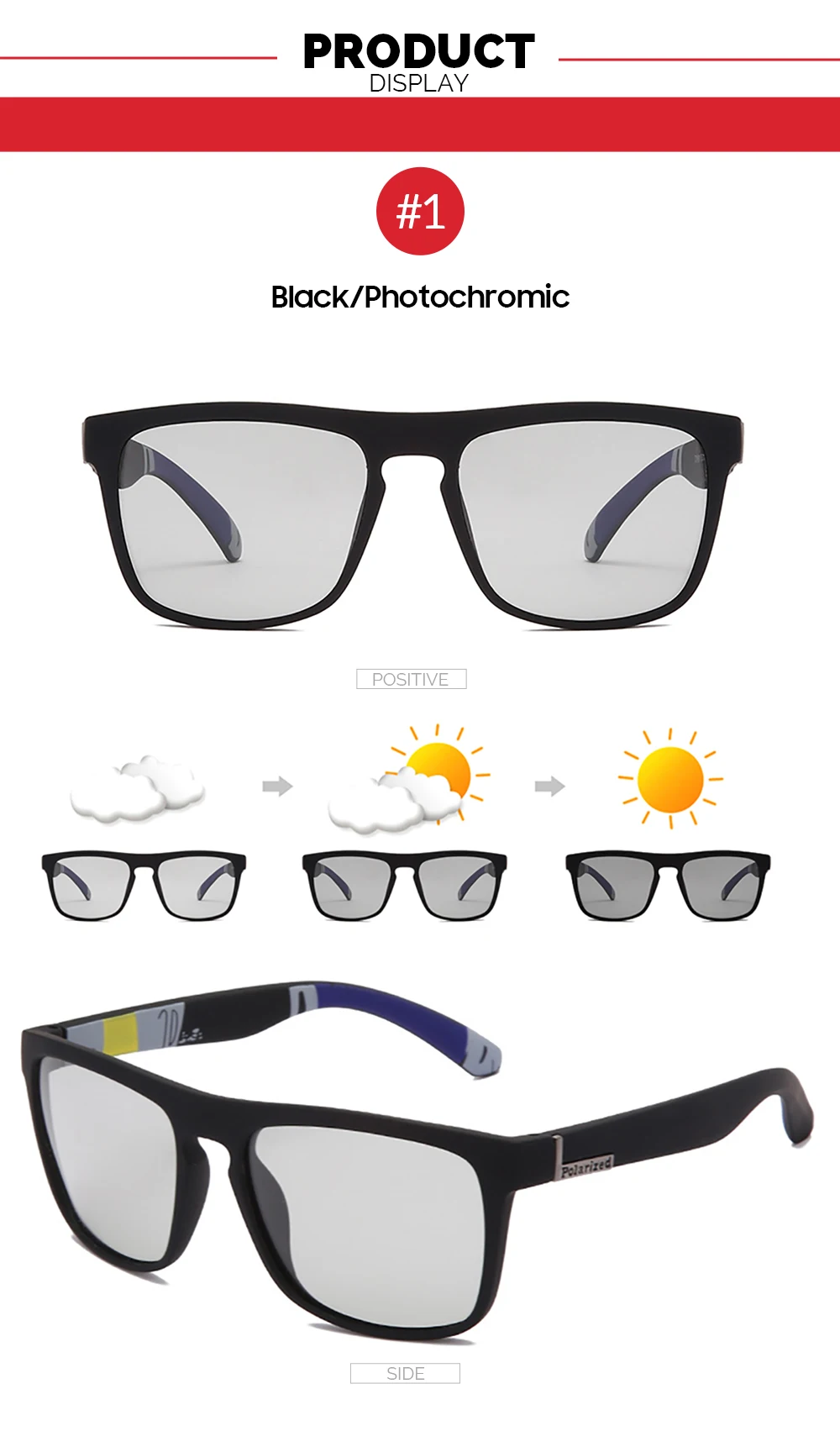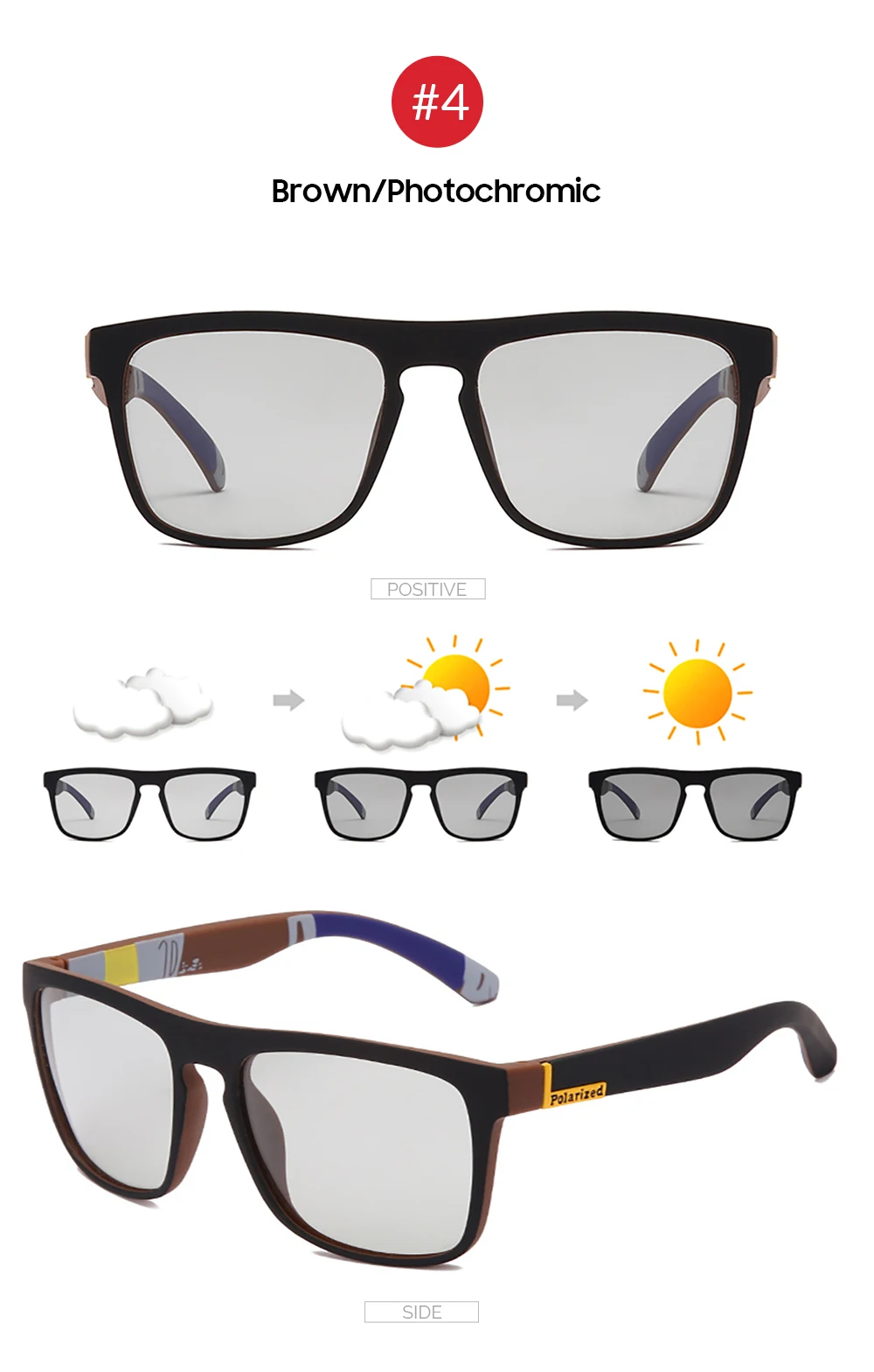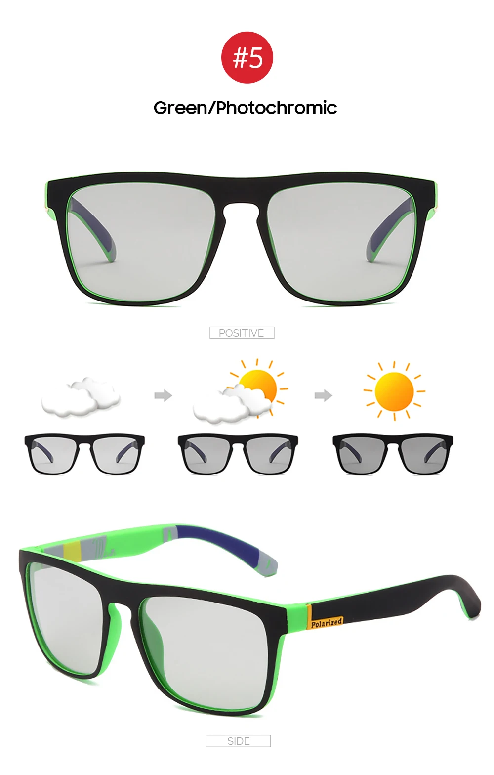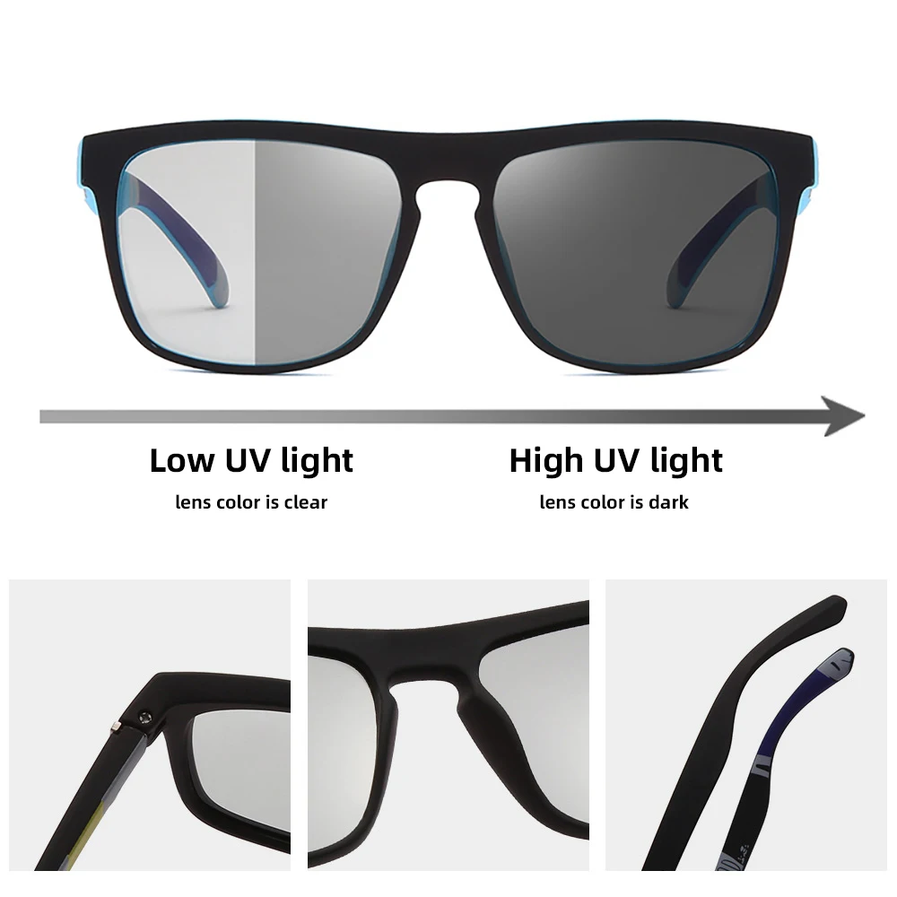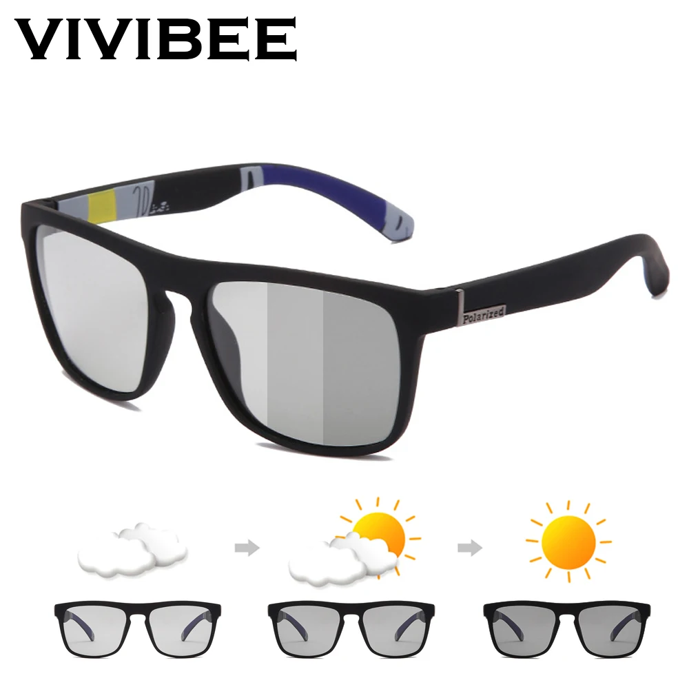 Солнцезащитные очки-хамелеоны VIVIBEE мужские, фотохромные поляризационные, в матовой квадратной оправе, для вождения, спорта на открытом воздухе