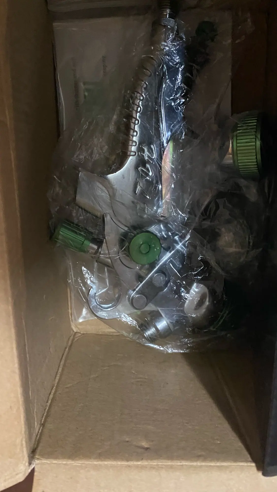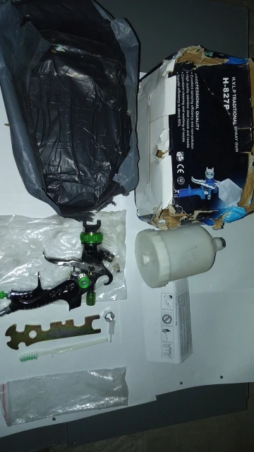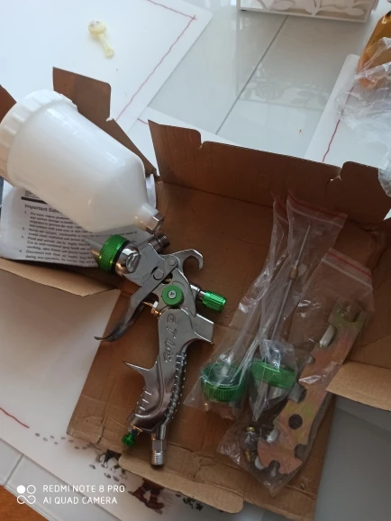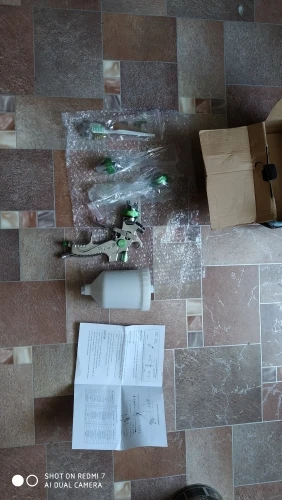 Упаковка мятая, сам краскопульт немного поцарапал. В деле опробовал, вроде норм