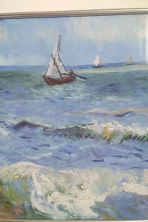 Путешествие около 25 дней, достаточно быстро. Интересная упаковка, в толстой и жесткой пластиковой трубке с хорошими пластиковыми крышками с обеих сторон. Затем оба края обернуты прозрачной толстой фольгой, ничего не произойдет с изображением-Отличная упаковка. Изображение: море в Les Saintes-Maries-de-la-Mer (1888). На самом деле, размер 40x30 см, нет места для большего размера, но если бы вы могли, я хотел бы выбрать больший размер так же близко к оригиналу. Что сказать, много было сделано об этой красивой картине. Копия очень хорошая, как я могу сказать. Купите его. Продавец и товар очень понравился, также транспортировка. Очень доволен