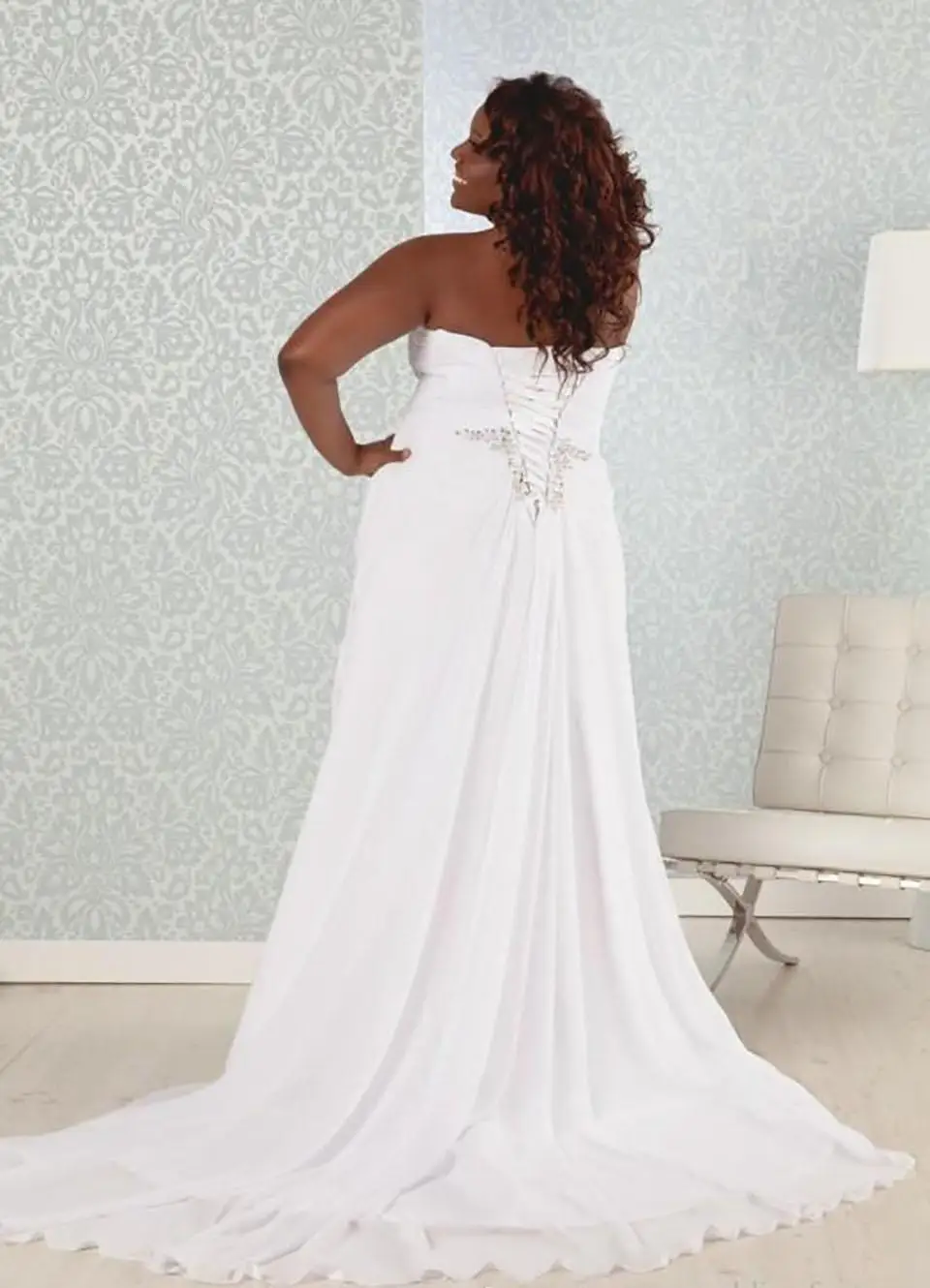 Шифоновые плиссированные вечерние платья больших размеров с V-образ...