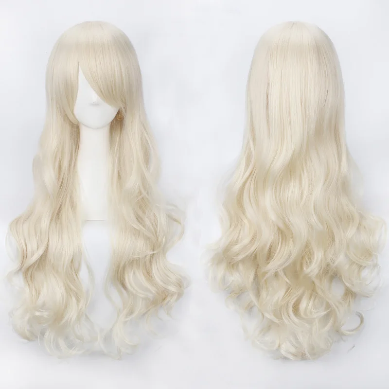 80 см длинные волнистые Серебристые серые бежевые белый парик для косплея для костюмированной вечеринки Хэллоуин 80 см кудрявые блондинки черные синтетические волосы парики