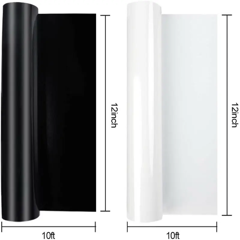 Винил теплопередачи для футболок 2 рулона 12 дюймов x 10 футов (30,5 см x 300 м) винил теплового пресса (черный и белый)