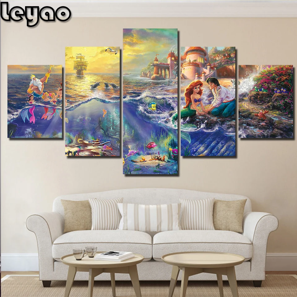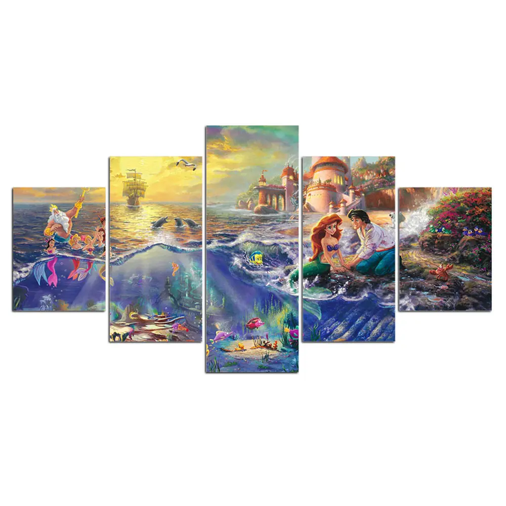 5 панелей, алмазная вышивка, мультяшная принцесса, маленькая Русалка, алмазная живопись, настенное искусство, 5 шт., мультяшная картина, подарок для детей