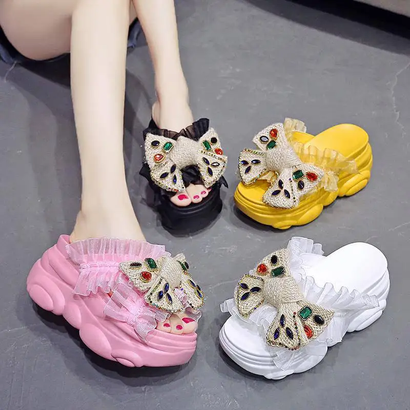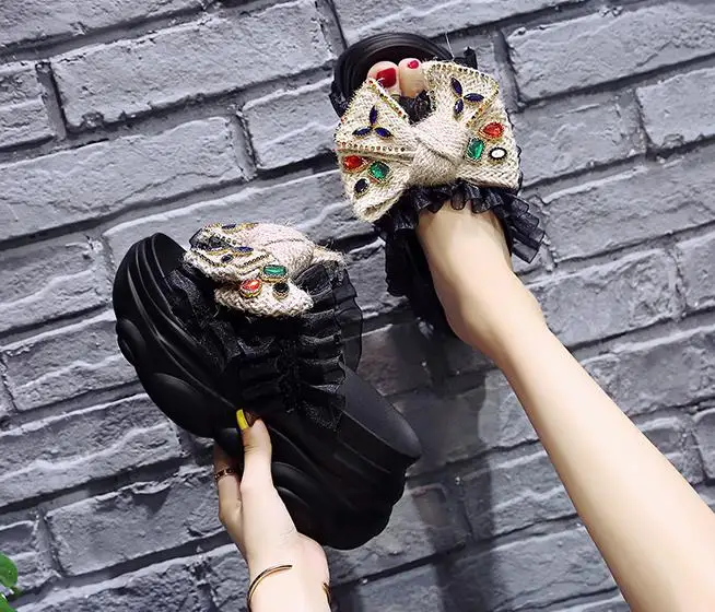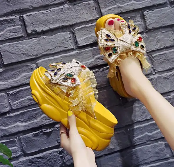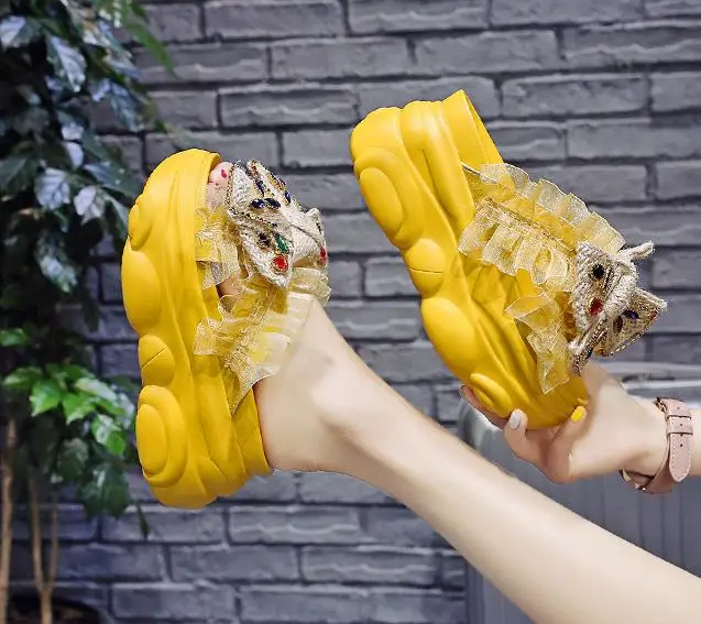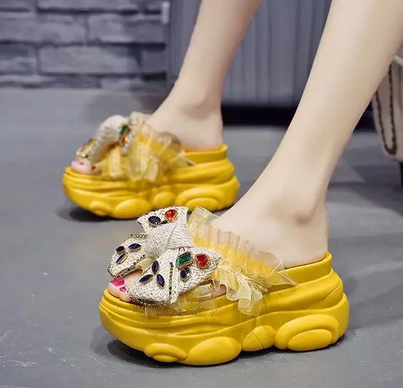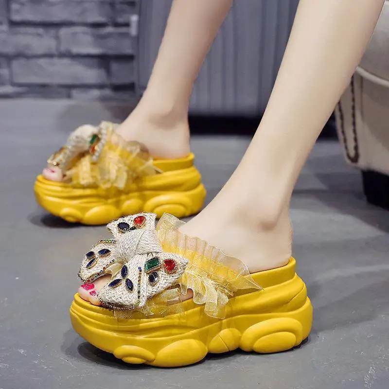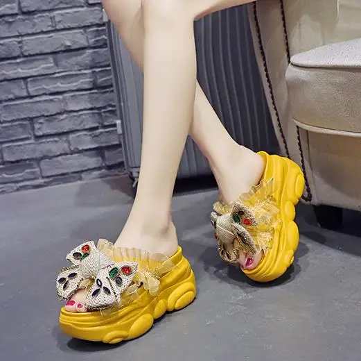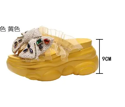 Женские массивные шлепанцы, летние шлепанцы ярких цветов на высокой платформе, с кристаллами, пляжные шлепанцы на высоком каблуке 2021 см, 8,5