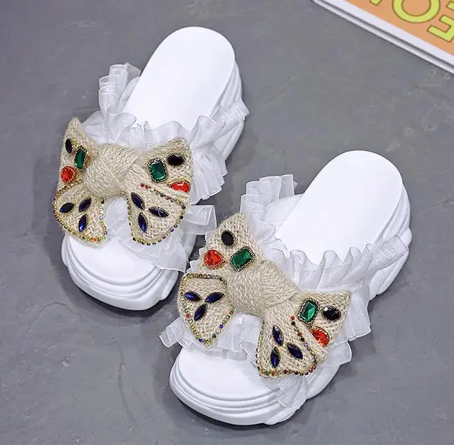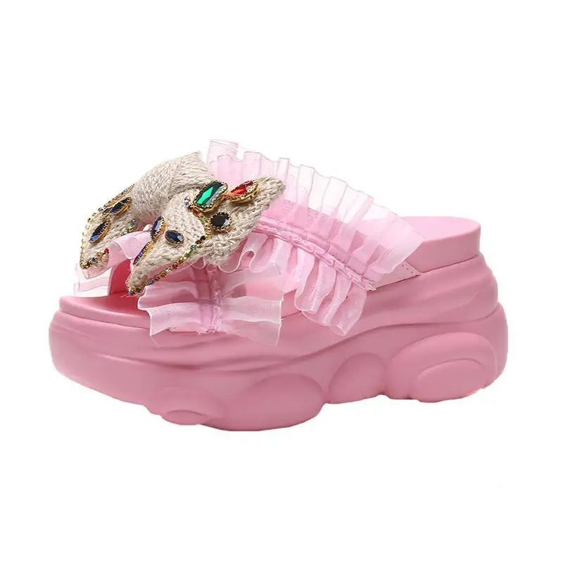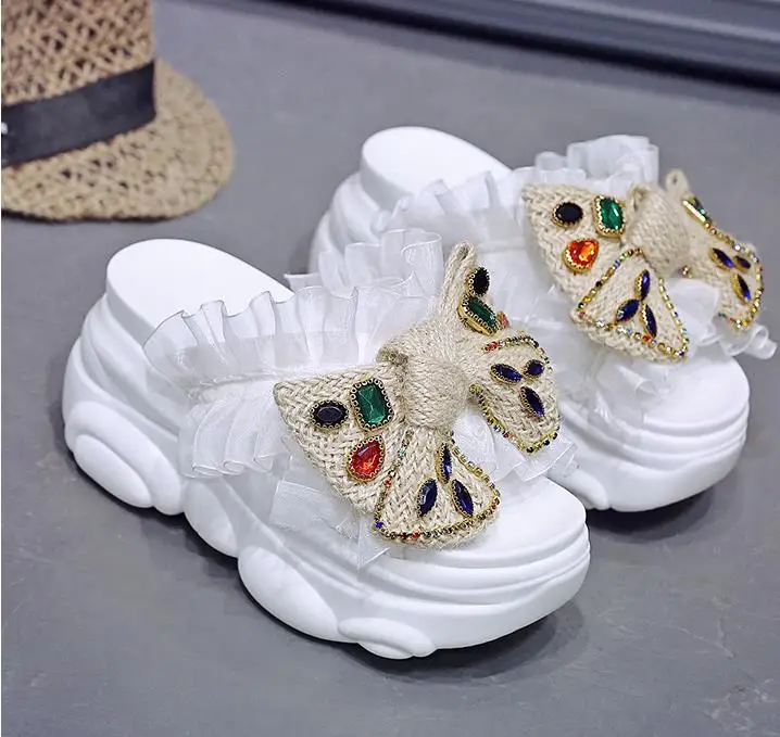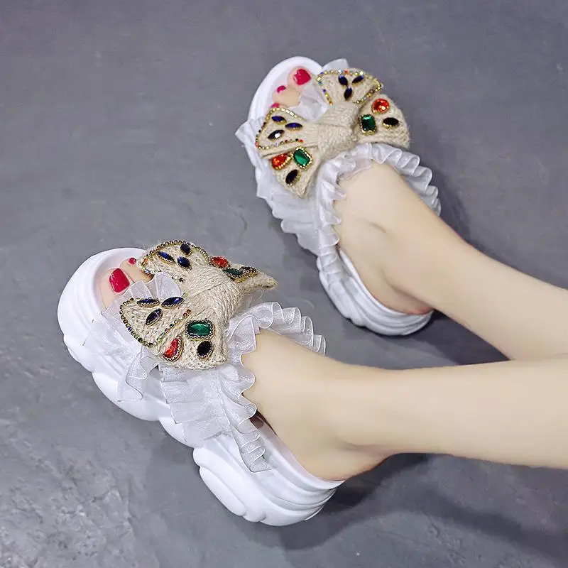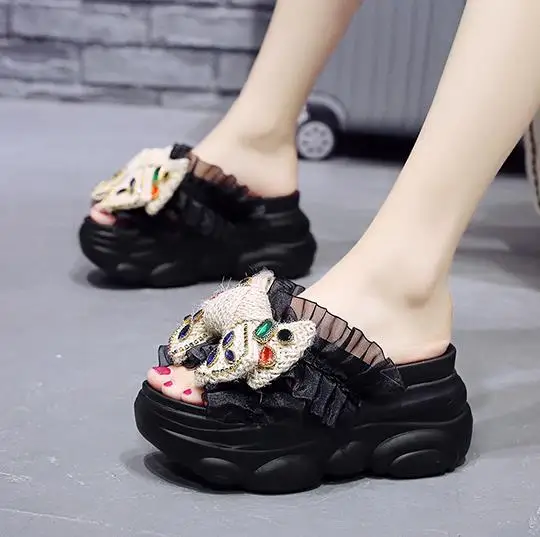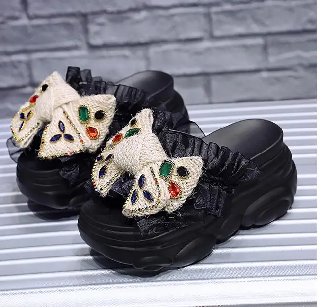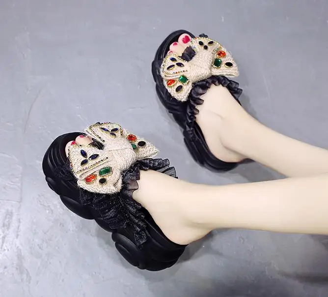 Женские массивные шлепанцы, летние шлепанцы ярких цветов на высокой платформе, с кристаллами, пляжные шлепанцы на высоком каблуке 2021 см, 8,5