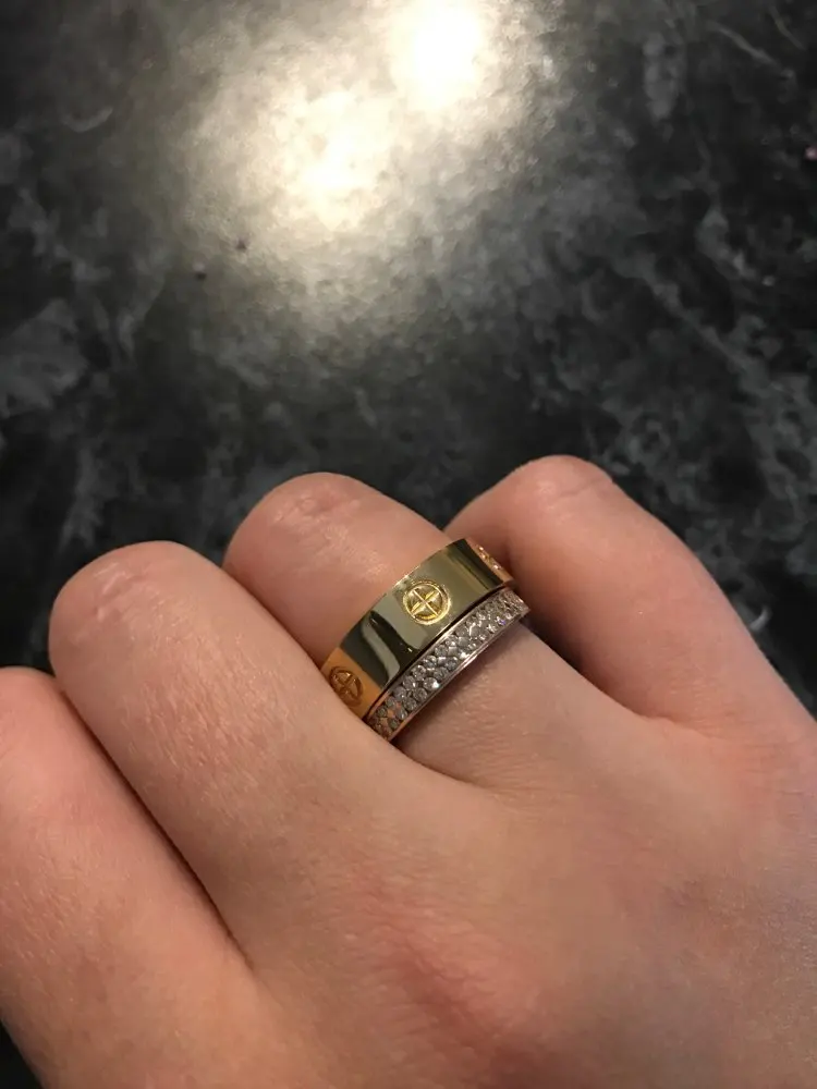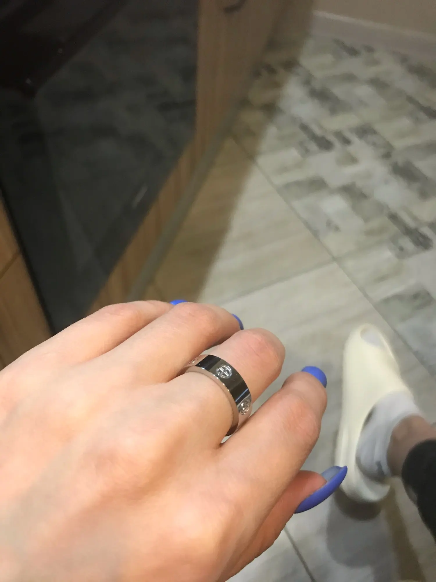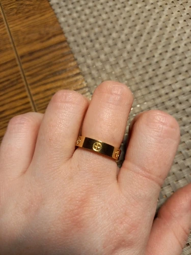 Красивое колечко! Лучше брать на размер больше, слишком плотно сидит из-за толщины))