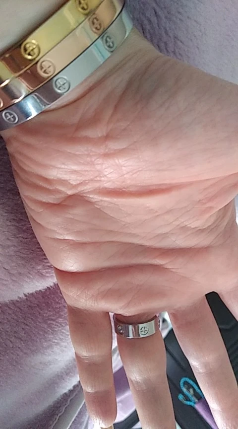 Кольцо классное, но не для моих пальцев. Мне нужно поуже. В Реале оно прям большое. По сравнению с моей обручалкой здоровенное. И с размеров не угадала. Взяла 8, а надо 7 на 17р. Может если с размером бы угадала, лучше бы смотрелось.