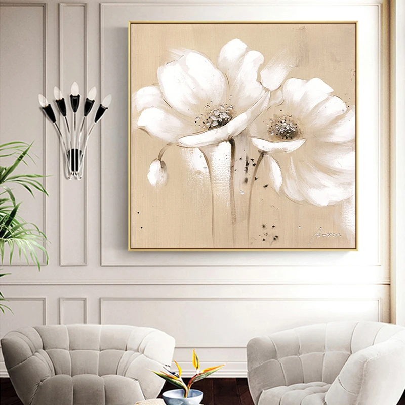 Картины с большими абстрактными цветами, настенные плакаты и принты белого цвета с современным маком для гостиной
