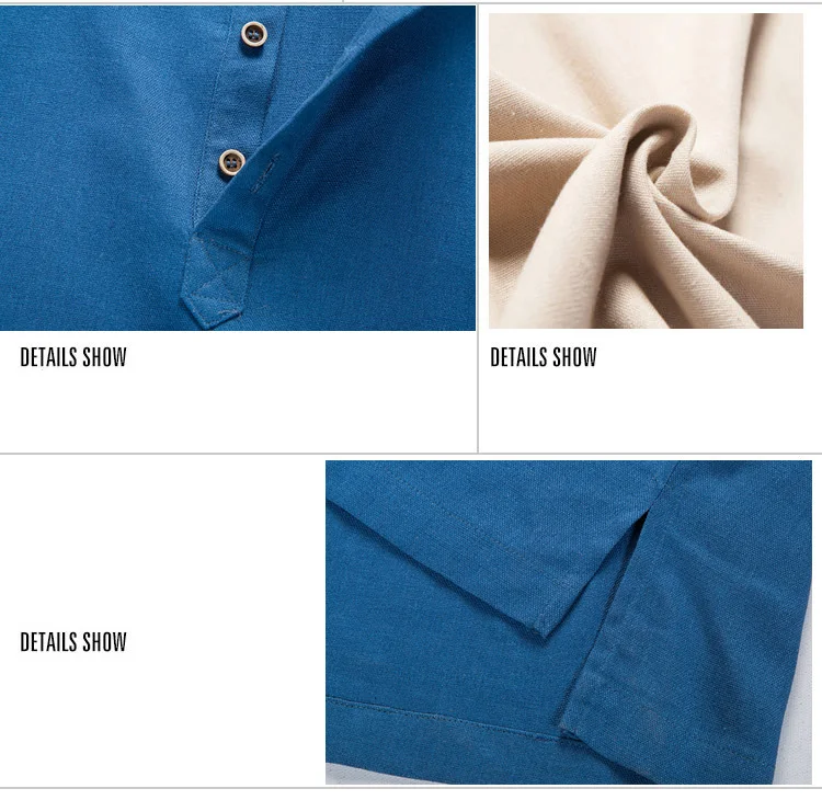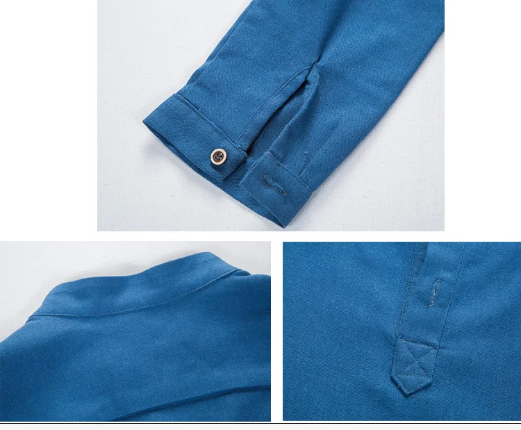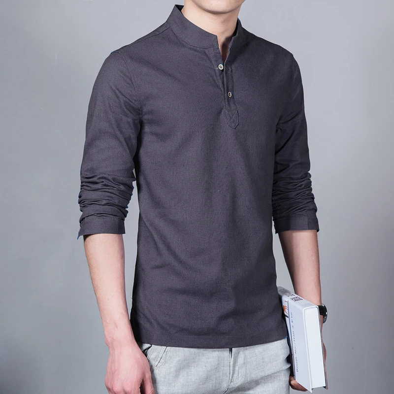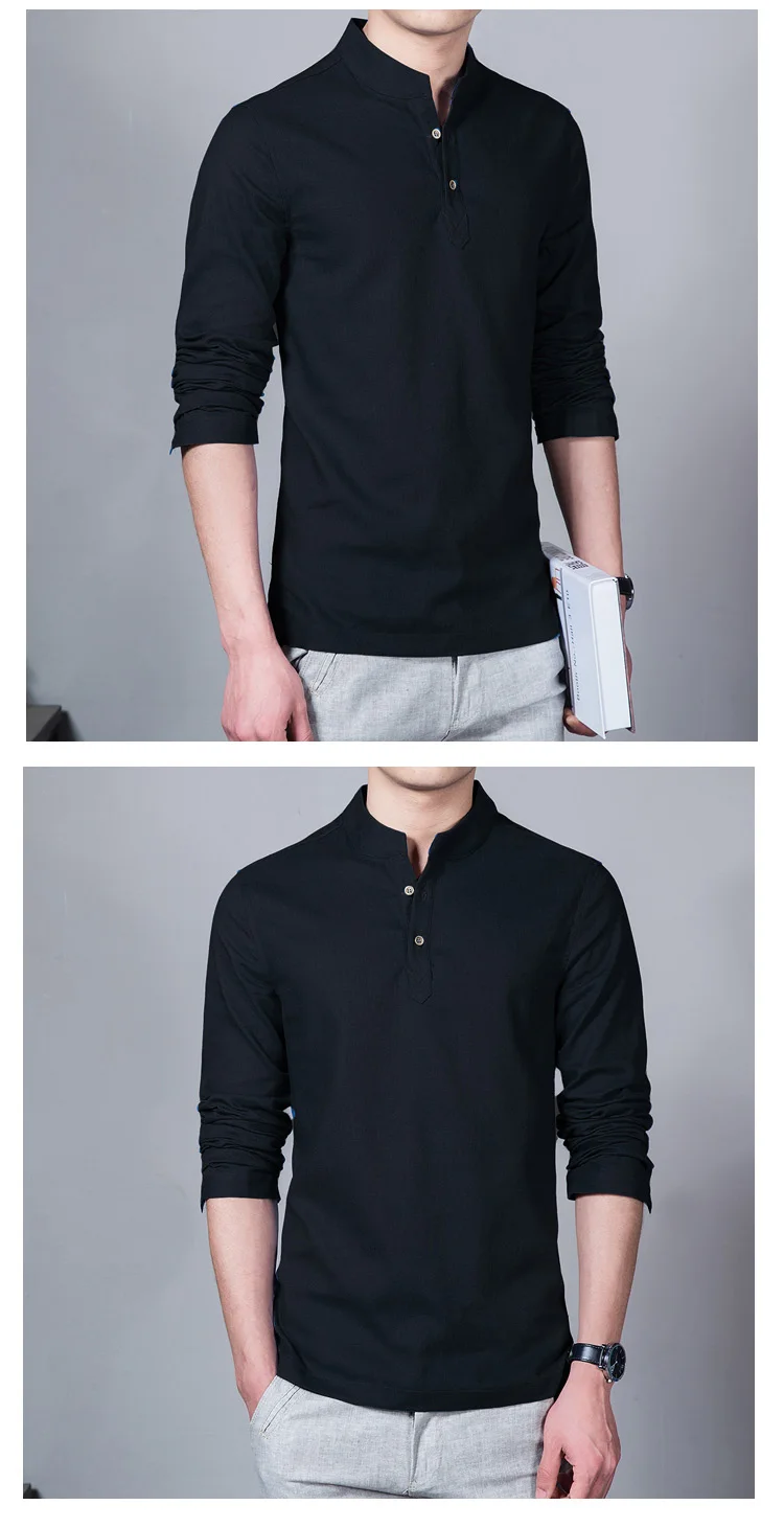 Мужская рубашка из хлопка и льна, модная повседневная Однотонная рубашка с длинными рукавами и воротником-стойкой, лето 2019
