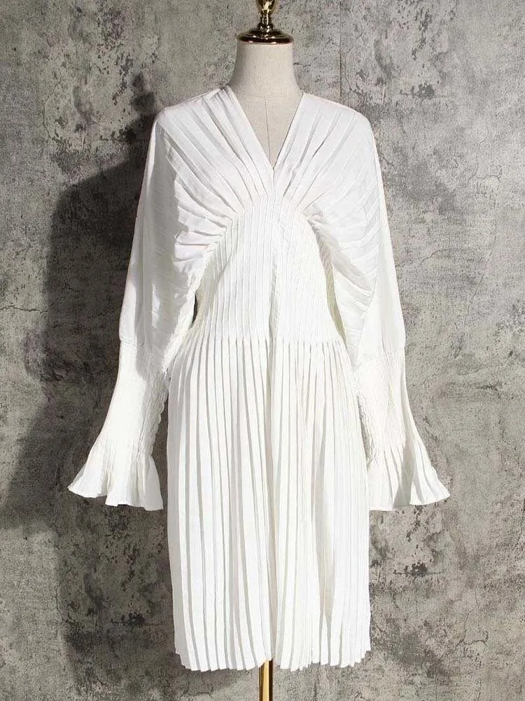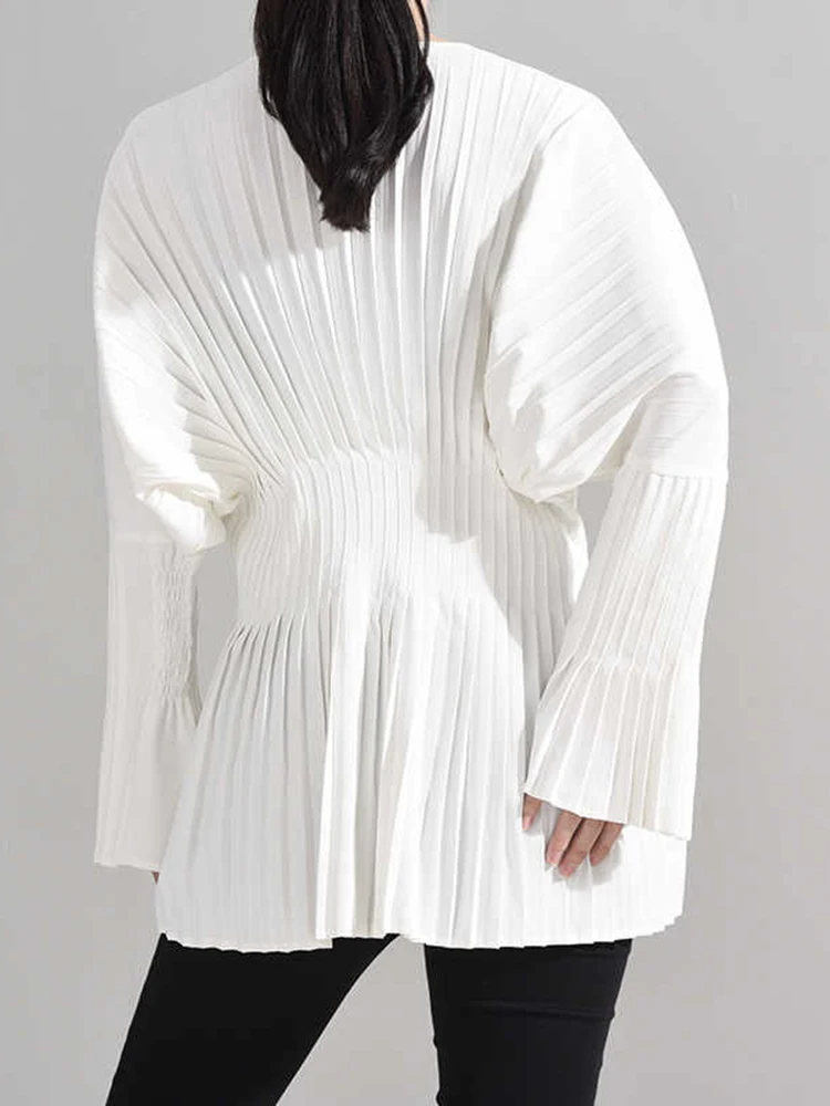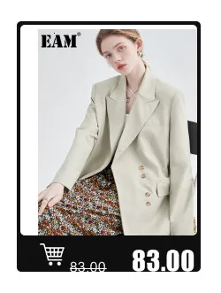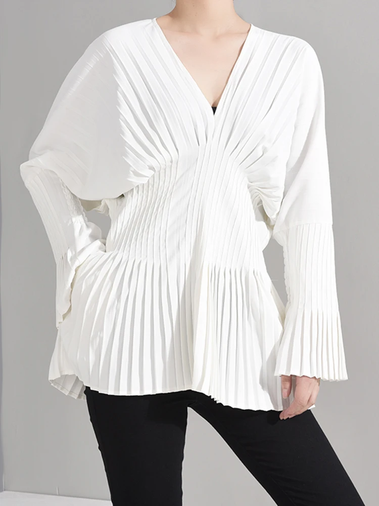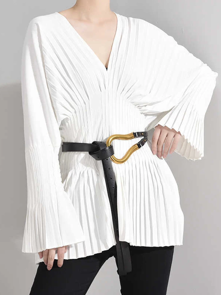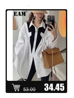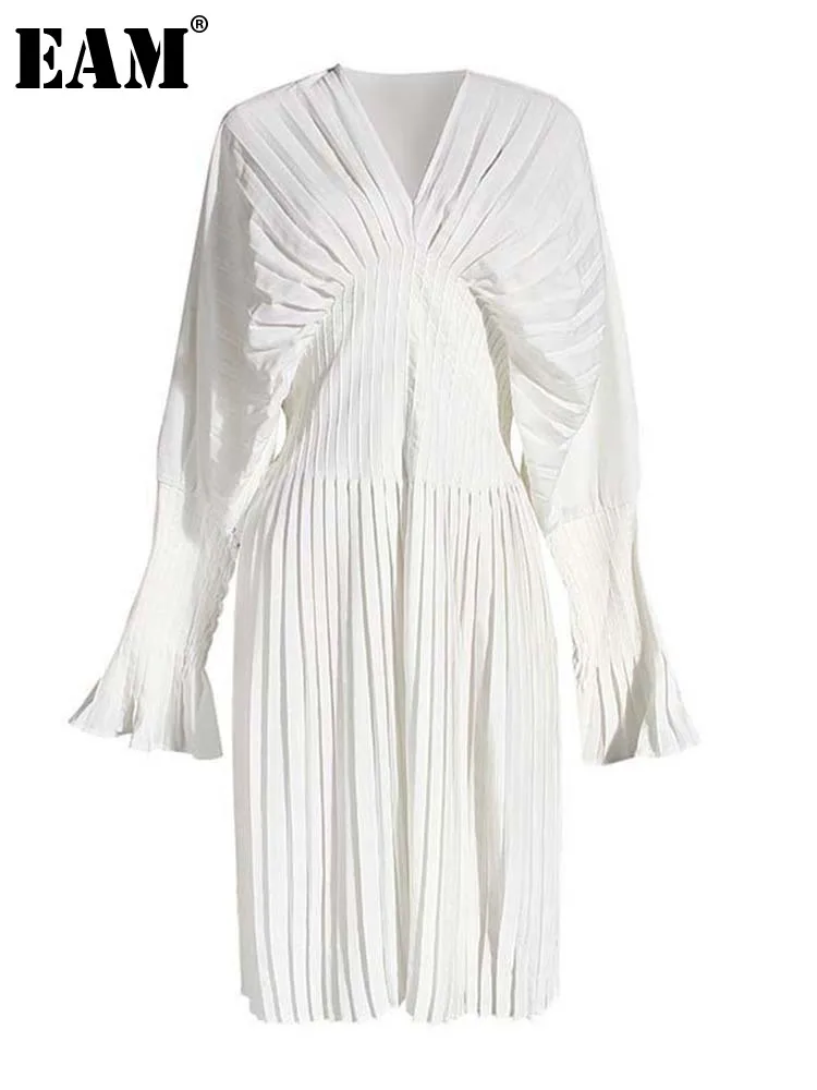 EAM Женская белая плиссированная Длинная блузка большого размера, новая свободная рубашка с v-образным вырезом и длинным рукавом, модная весенне-летняя 2022 1W326